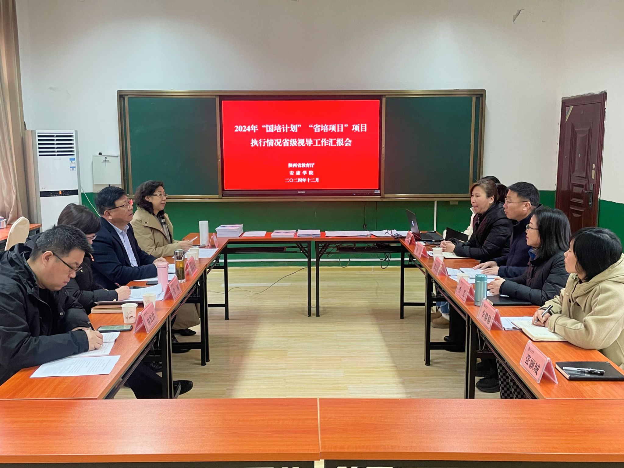 12月24日上午,以宝鸡教育学院李春杰院长为组长的陕西省教育厅“国培计划”“省培项目”视导专家组对Beat3652024年“国培计划”“省培项目”执行情况开展视导调研。党委副书记张东红,继续教育学院院长查芳、副院长韩涛及相关工作人员参加了汇报会。会议由查芳主持。
