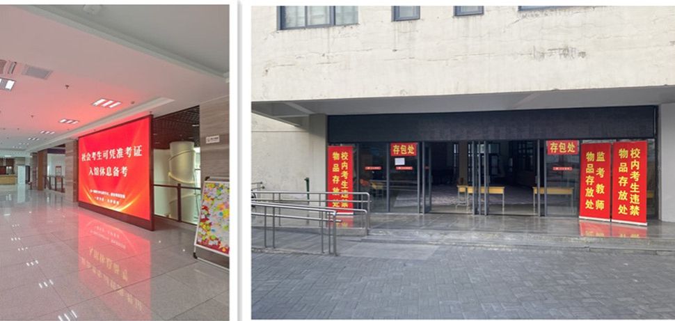 为进一步防范手机及新型智能产品作弊,确保考试安全,按照上级要求,学校全面落实配置智能安检门、实现5G屏蔽全覆盖、手机等智能设备不带入考点封闭区域等政策要求。在教学楼、图书馆等场所设置了手机存放处及考前临时休息区域,方便考生存取手机,80余名学生志愿者尽职尽责,为考生提供周到的服务,为考生安心考试提供保障。
