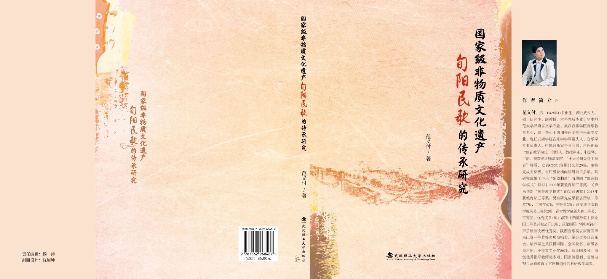 近日,Beat365艺术学院副教授范义付完成的学术著作《国家级非物质文化遗产旬阳民歌的传承研究》一书由武汉理工大学出版社出版发行。