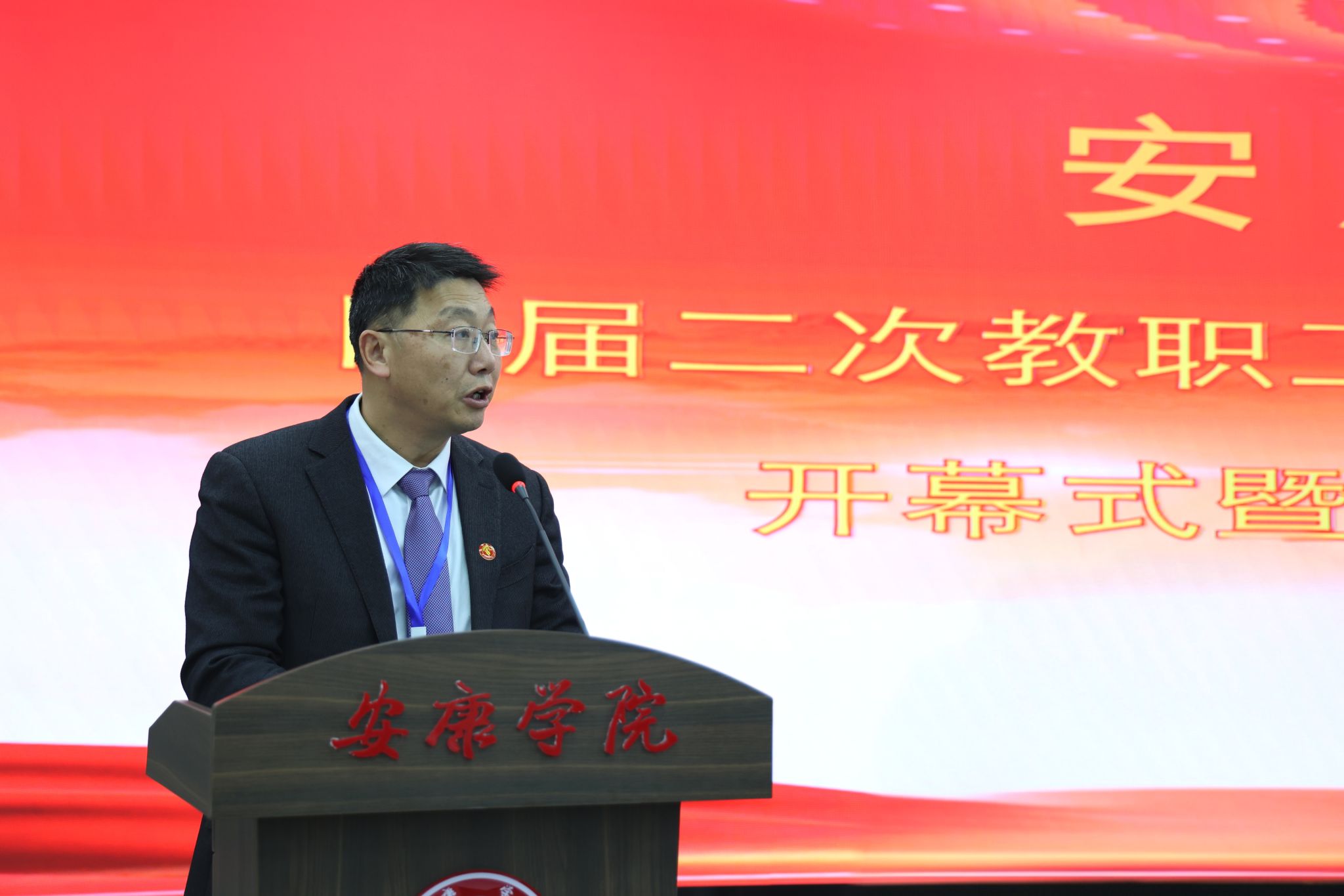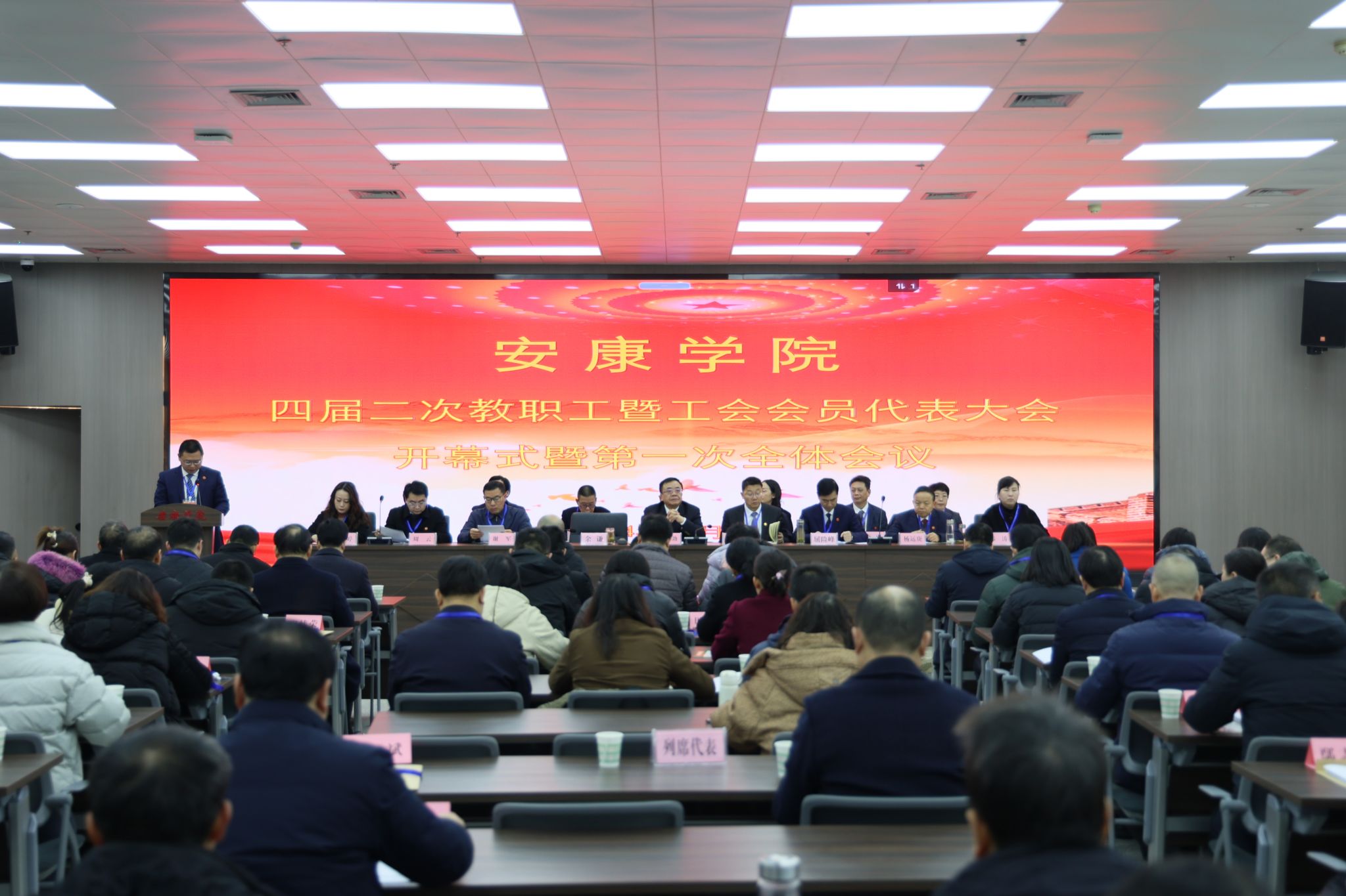 12月30日,Beat365唯一官方网站四届二次教职工暨工会会员代表大会在江南校区图书馆六楼报告厅召开。来自全校各个岗位的教职工暨工会会员代表、列席代表汇聚一堂,共商学校发展大计。党委副书记、工会主席张东红致开幕词,校长余劲做学校工作报告,党委副书记、纪委书记、监察专员安永强致闭幕词。党委副书记余谦、张东红先后主持大会。