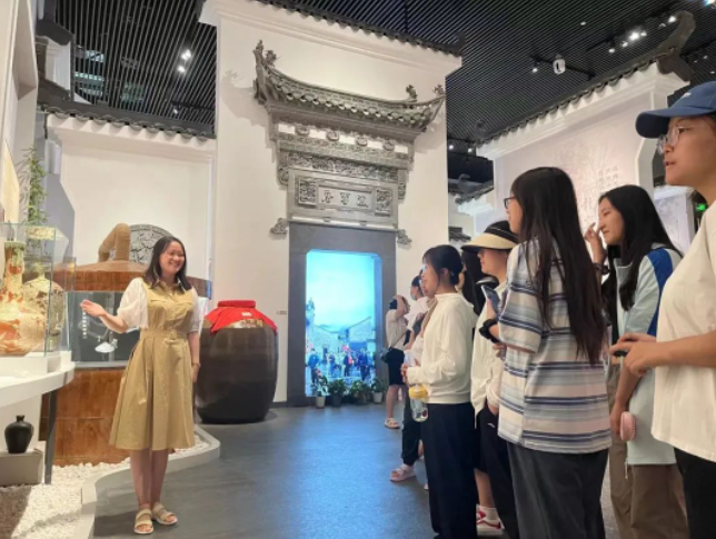 该学院文博专业教师李童、叶婉婷和韩梦瑶以非遗馆为依托,现场开展教学实践,分别针对场馆布置、展品背景以及界首彩陶的烧制技艺等进行了讲解,并引导同学们在现场开展实践活动。