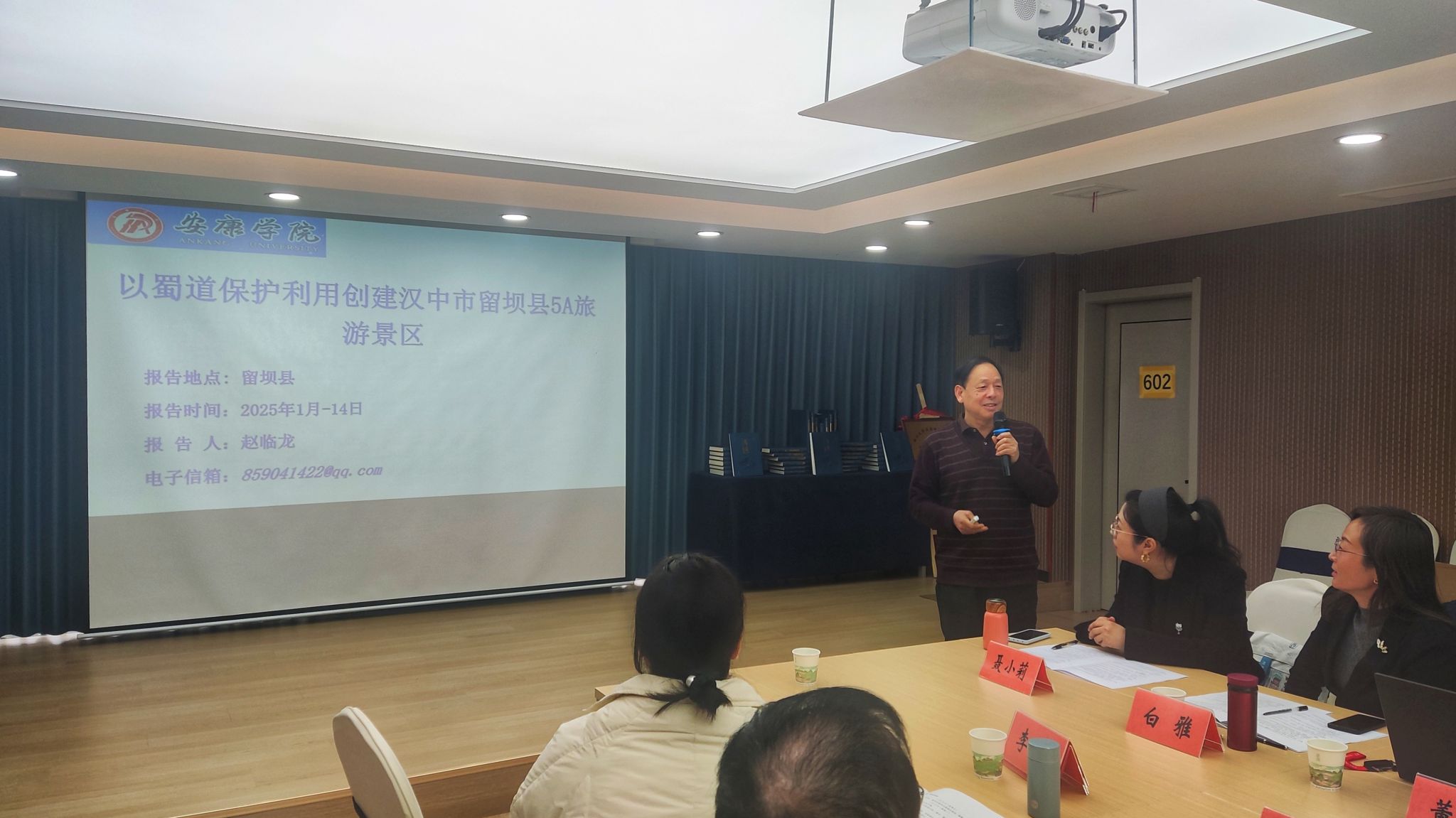 会上,赵临龙教授做了《以蜀道保护利用创建汉中市留坝县5A旅游景区》报告,从留坝县旅游发展的优势、挑战及构想三个方面进行深入交流讨论,得到与会人员的肯定。