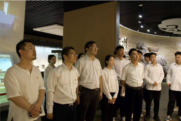 美术学院党总支书记王超带领全体党员重温入党誓词后,两学院党员师生参观了沧州市博物馆,了解了沧州的历史发展和大运河文化,进一步坚定了文化自信。美术学院副院长王通与沧州市博物馆副馆长王晓娟互赠了文创产品,双方就在“大美育”服务地方活动中进一步合作达成意向。