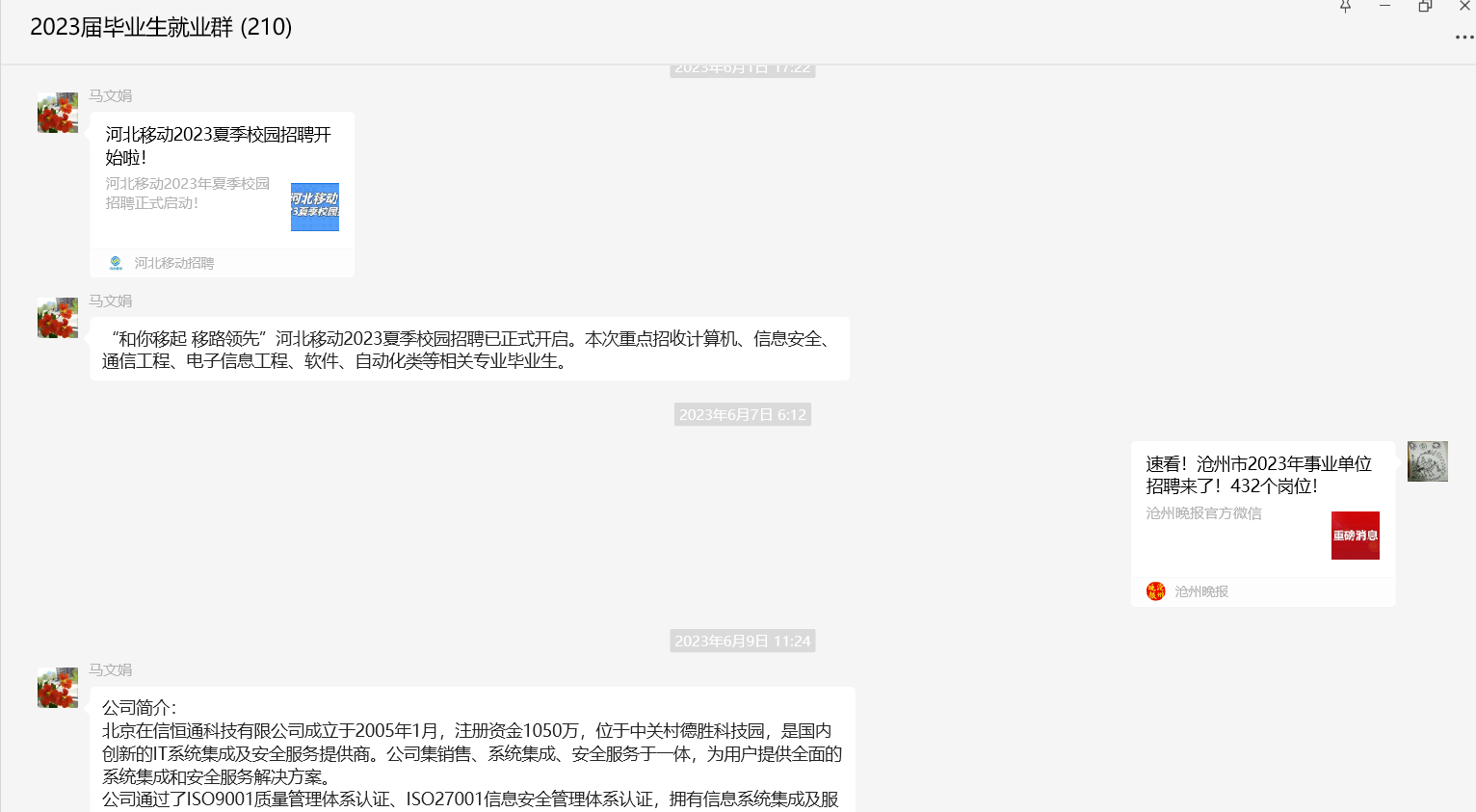 该学院通过建立2023届毕业生通知群,为毕业生推送优质就业岗位。同时,通过发动专任教师、校友等资源,为毕业生拓宽就业渠道,提供就业机会。学院班子成员和辅导员老师还积极了解毕业生的生活困难和就业困难,通过电话、微信开展线上谈心,特别针对建档立卡的毕业生,采取“一对一”帮扶措施,为他们提供心理辅导和岗位推荐,帮助这部分学生明确就业目标、找准就业方向、提高就业能力。