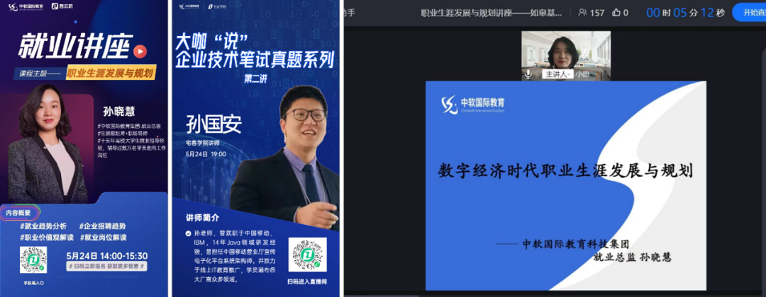 该院与中软国际教育科技集团共同实施了供需对接育人项目,举办线上讲座、面试技巧指导等一系列活动;联系了十余家IT企业,在北航科技园联合举办线下招聘会;开展了职业生涯发展与规划就业讲座。