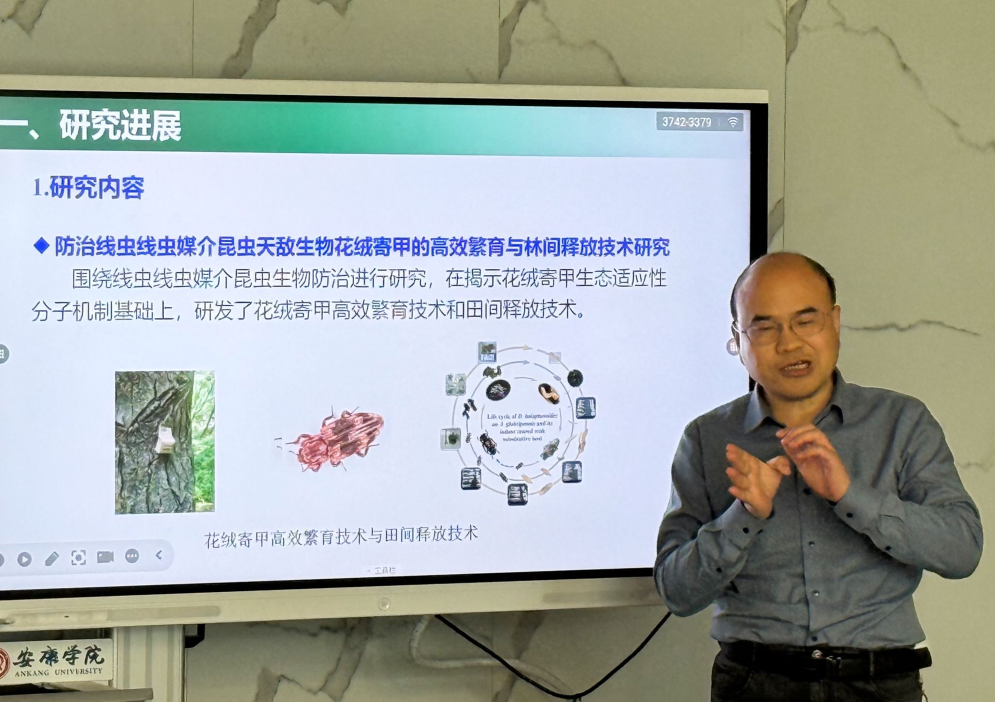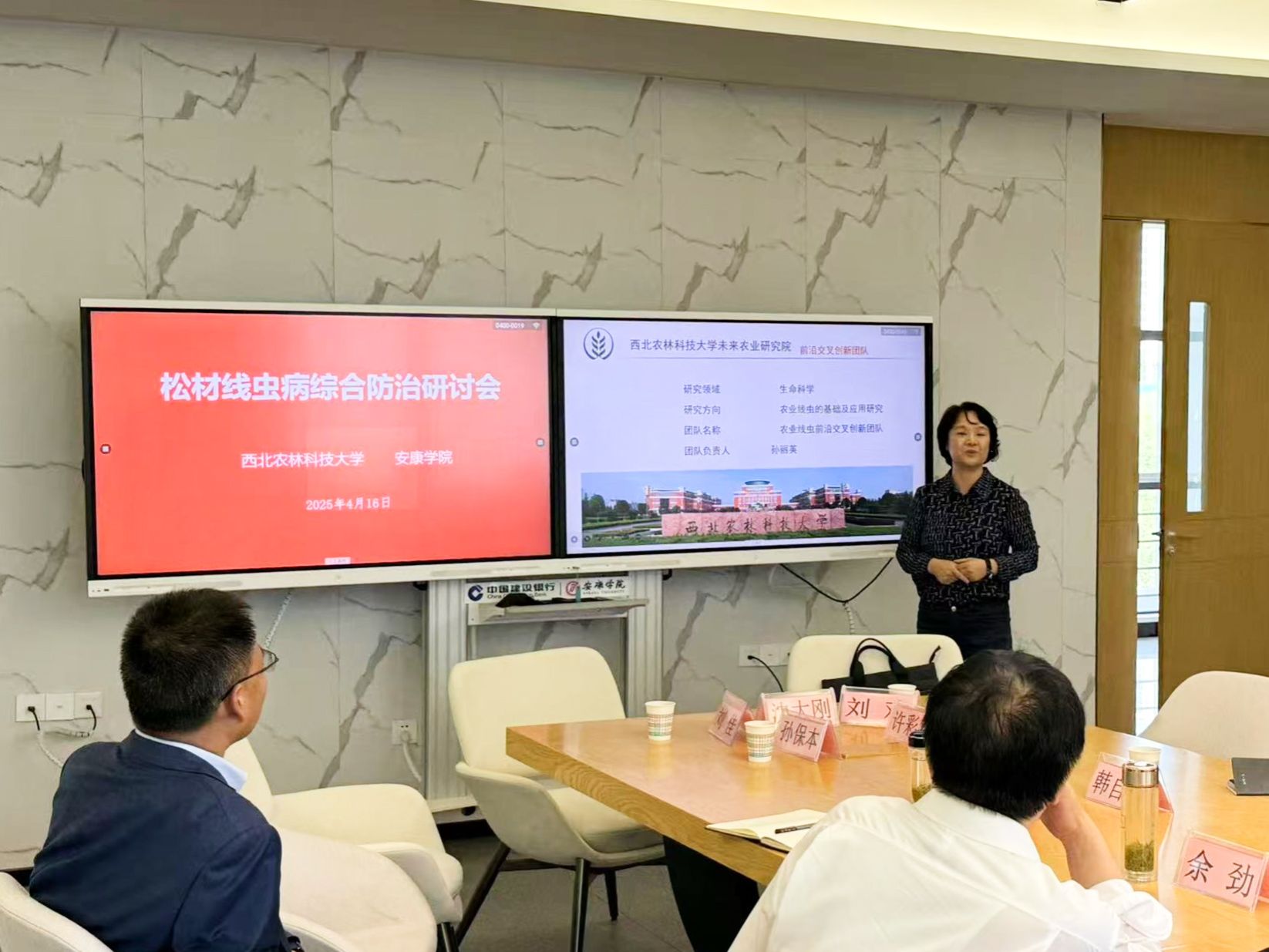 会上,孙丽英教授介绍了团队在松材线虫致病机制及绿色防控技术方面的研究进展;唐光辉教授结合多年实践经验,分享了松材线虫病的防治现状及挑战;韩自端教授就松材线虫病的专项研究设计进行了详细阐述。随后,Beat365唯一官方网站教师刘欢汇报了松材线虫病在安康地区的发生情况,为后续防控工作提供了重要参考。