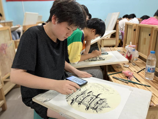 据悉,“七彩运河大家绘”活动历时10天,课程主题均围绕大运河精神和沿岸风景建筑,不仅有挖掘学生创意的综合材料绘画,还有培养孩子观察能力的“园博园”“百狮园”写生课。