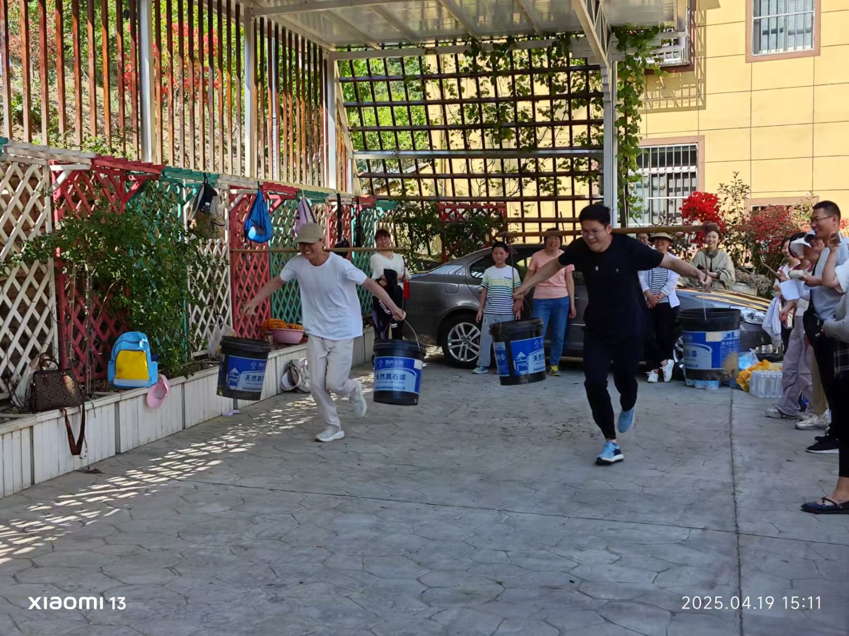 田间地头变身“趣味赛场”,活动现场欢声不断。在土豆削皮挑战赛中,教职工们巧用削皮刀、汤匙等工具,比拼速度与创意:传统刀工行云流水,勺刮技法灵动高效,“徒手搓皮”更是引发阵阵喝彩。扁担挑水接力赛中,教师们两人一组,肩挑木桶往返竞速,平衡技巧与团队协作的较量引得围观师生笑声连连。“土豆圆滚滚,抓不住!”“这扁担比实验室仪器还难驾驭!”趣味项目中,劳动的质朴乐趣与团队的默契协作交织,为乡村振兴实践增添了一抹生动亮色。