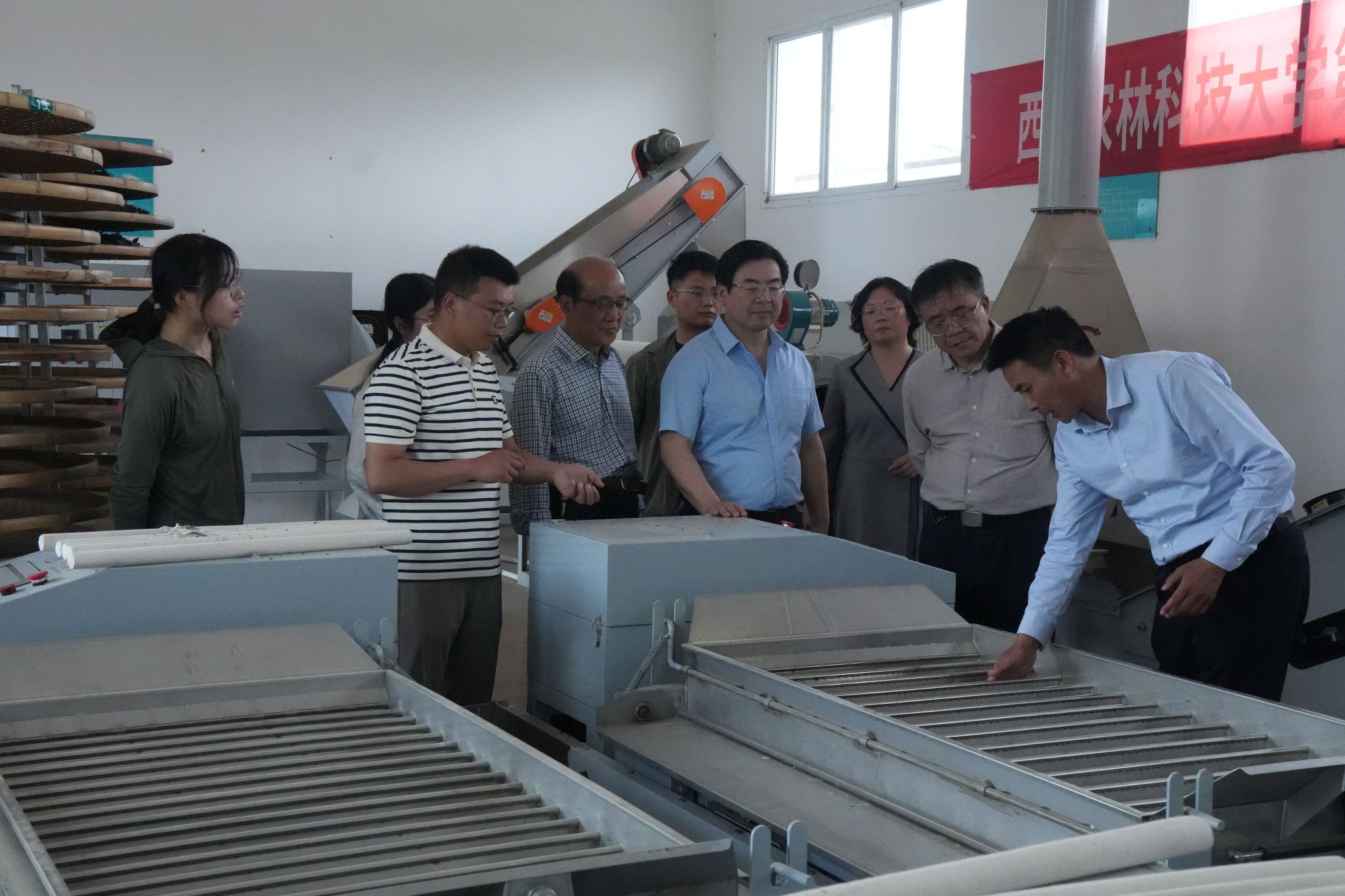 调研组首先参观了试验站的茶树资源圃和茶叶加工车间。西北农林科技大学西乡茶叶试验示范站首席专家余有本介绍了茶叶试验示范站的茶树新品种展示园、绿色防控示范园、茶树营养精准调控示范园、优质高产茶园示范区、茶树无性系良种苗木繁殖示范区、生态茶园示范区等多个园区建设情况;目前试验站共收集优良茶树种质资源1400余份,资源圃通过现代生物技术育种和常规手段结合,为陕南茶区种质资源保护、高产优质抗逆茶树新品种选育提供有力保障。在茶叶加工车间,调研组现场了解了炒青、毛尖及花香型红茶等茶叶制作流程,就设备、工艺等与站内人员进行了详细的交流。