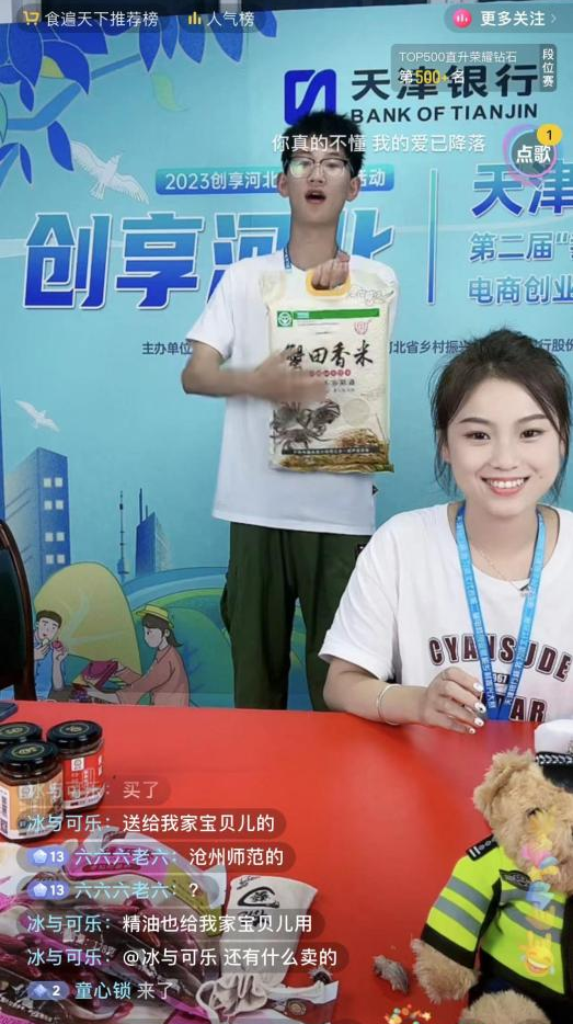 近日,由河北省人力资源和社会保障厅、河北省乡村振兴局、天津银行股份有限公司石家庄分行联合主办的“天津银行杯”第二届“我为河北代言”电商创业赋能乡村振兴大赛在雄安新区落幕。太阳集团齐越传媒学院齐传添翼大学生直播团队代表沧州市本科院校组进入决赛,最终获得三等奖,参赛队伍成员同时获得由河北省职业技能鉴定中心颁发的互联网营销师四级职业技能等级证书。