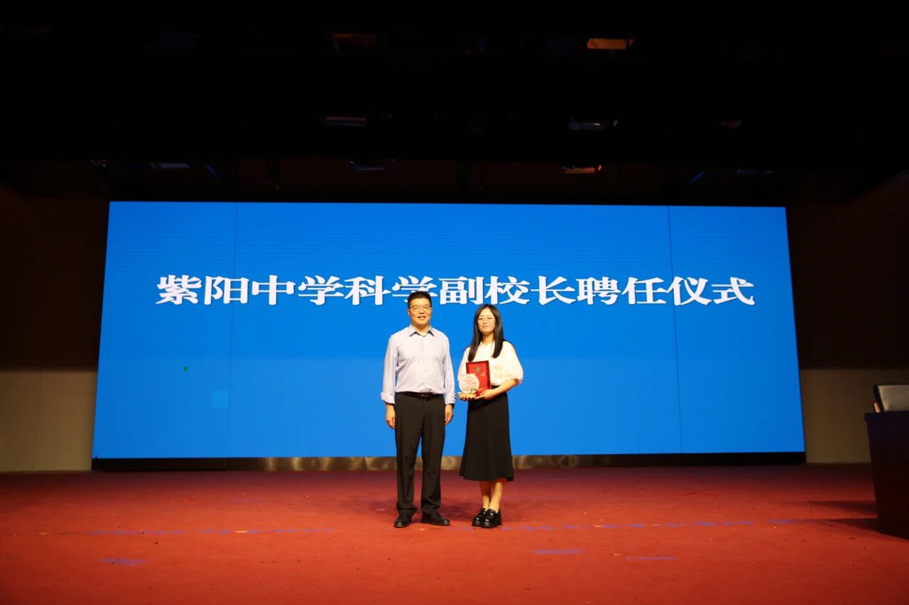 近日,紫阳中学在多功能厅举行隆重的聘任仪式,教育学院教师姚娜正式受聘为该校科学副校长。仪式由紫阳中学校长冯小强主持,学校书记徐培顺为姚娜颁发聘任证书,标志着双方在科学教育领域的合作迈出重要一步。