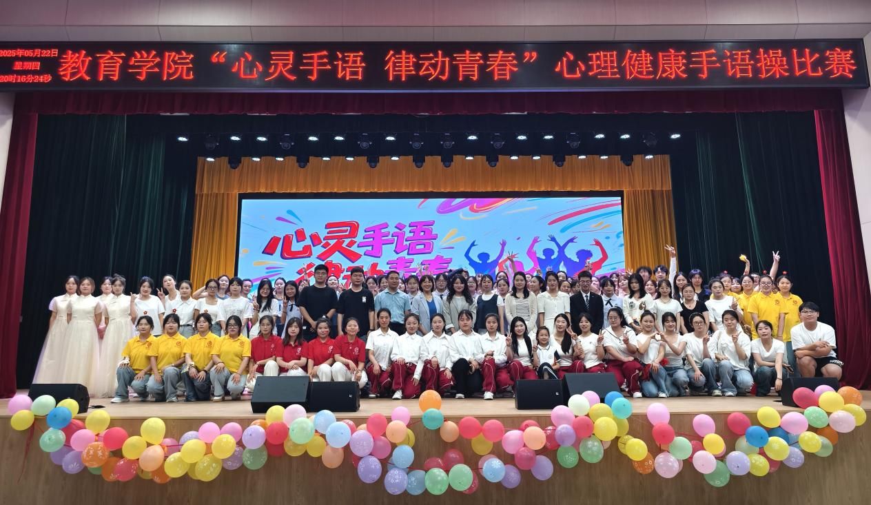 5月22日晚,由大学生心理健康教育中心主办、教育学院承办的“心灵手语 律动青春”心理健康手语操比赛决赛在江南校区大礼堂圆满落幕。教育学院党总支书记王璐为活动致辞,大学生心理健康教育中心主任柯小敏、学前教育系宋燕宇博士等担任评委,全校600余名师生现场观看演出。