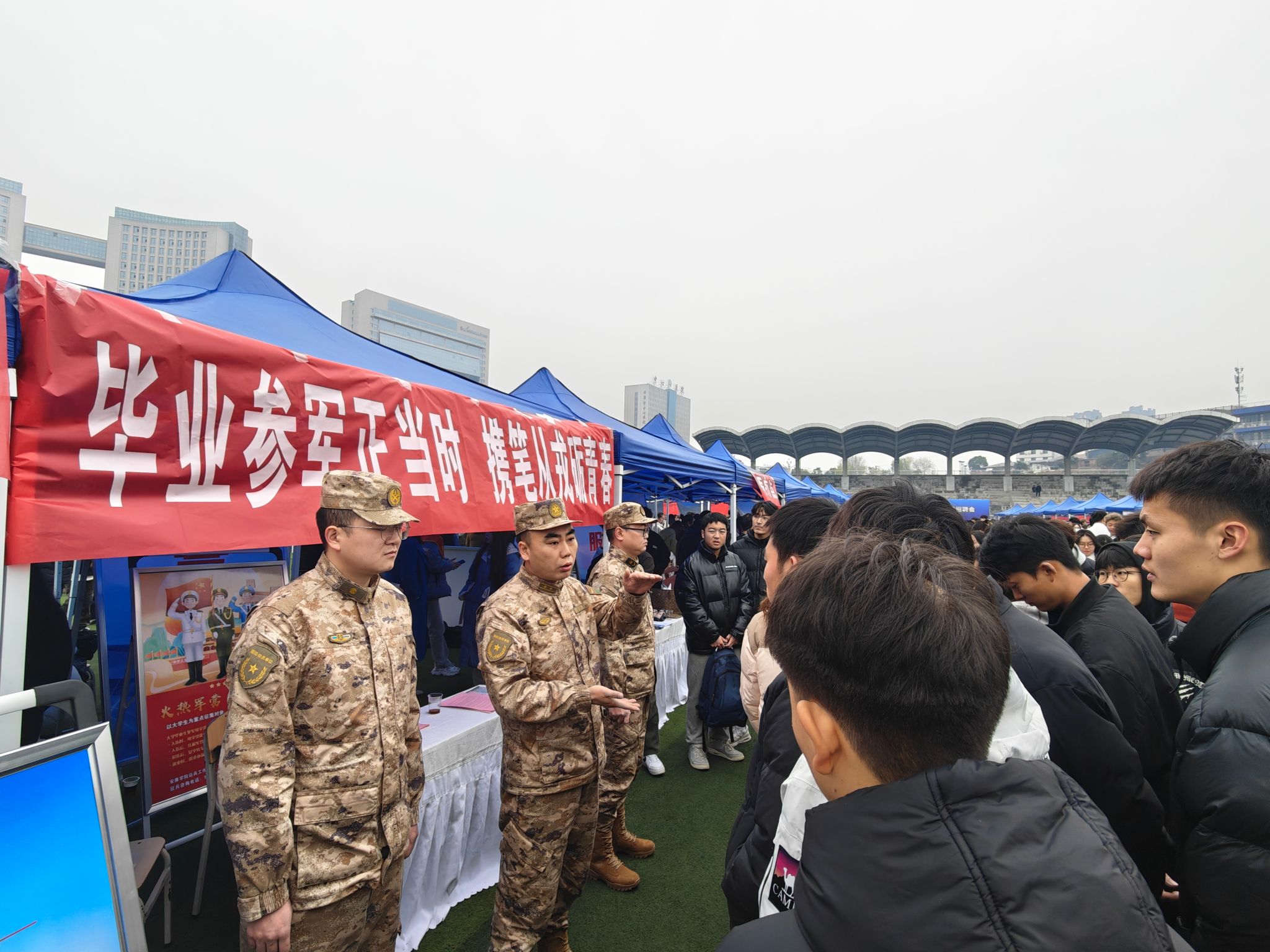 5月23日上午,学校乐业陕西“就”在三秦 职引未来——Beat365唯一官方网站专场招聘会现场人潮涌动。校武装部设立的“征兵咨询站”成为全场瞩目的焦点。由Beat365退役大学生士兵组成专业咨询团队,身姿挺拔、热情饱满,为前来咨询的咨询学生详细解答参军政策,传递携笔从戎的报国情怀。