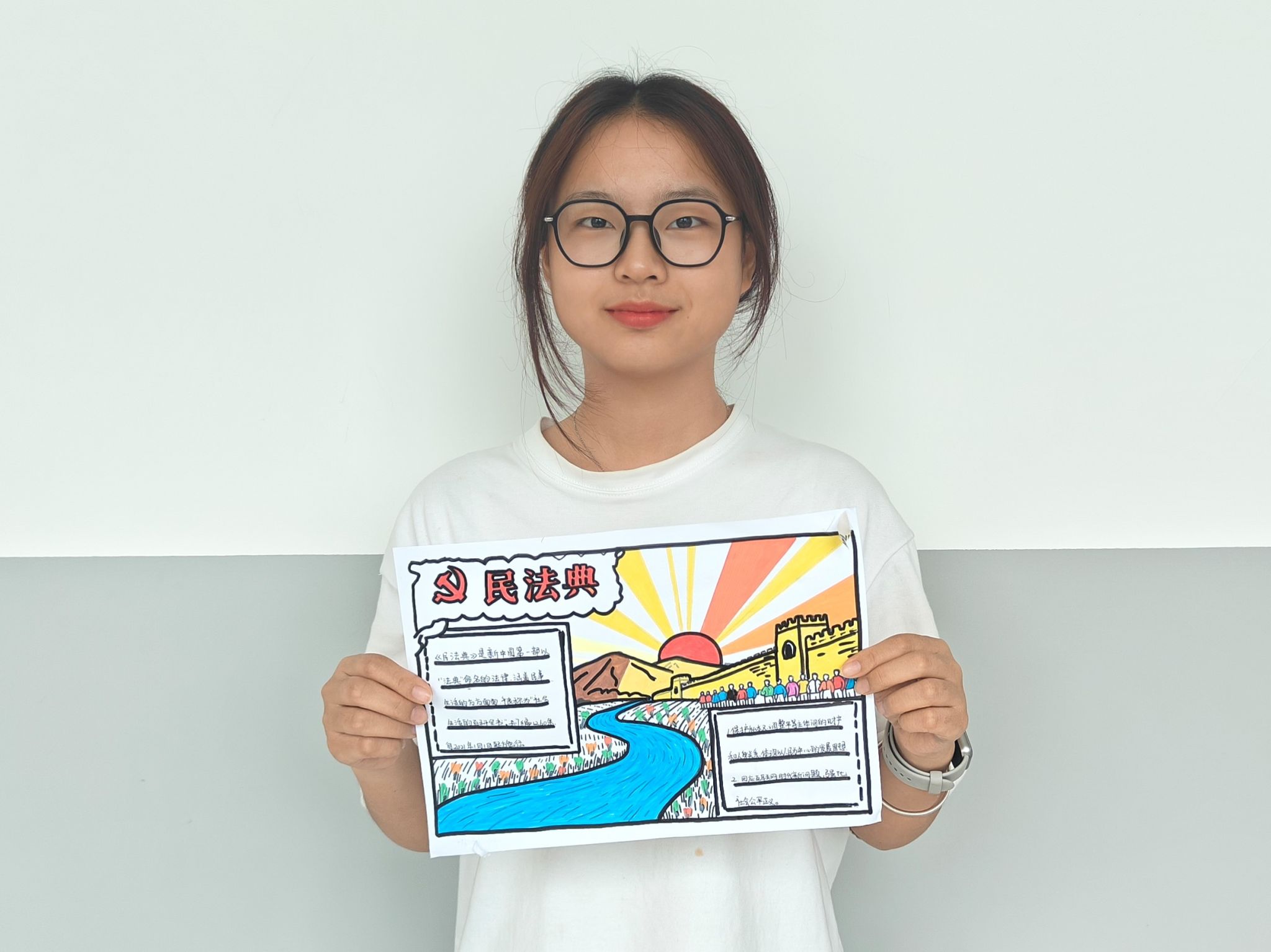 为创新普法形式,学院团总支以“画笔绘法典,法治润心田”为主题举办民法典学习主题画展。同学们热情参与,以画笔诠释对民法典的理解。同学们有的通过描绘生活场景,生动展现民法典在日常生活中的具体应用;有的以抽象的艺术形式,深刻表达对法治精神的感悟。每幅作品都凝聚着同学们对民法典的学习和思考,将法治教育与美育有机结合,让抽象的法律理念以更鲜活的方式深入人心,进一步激发了同学们学习法律知识的热情。