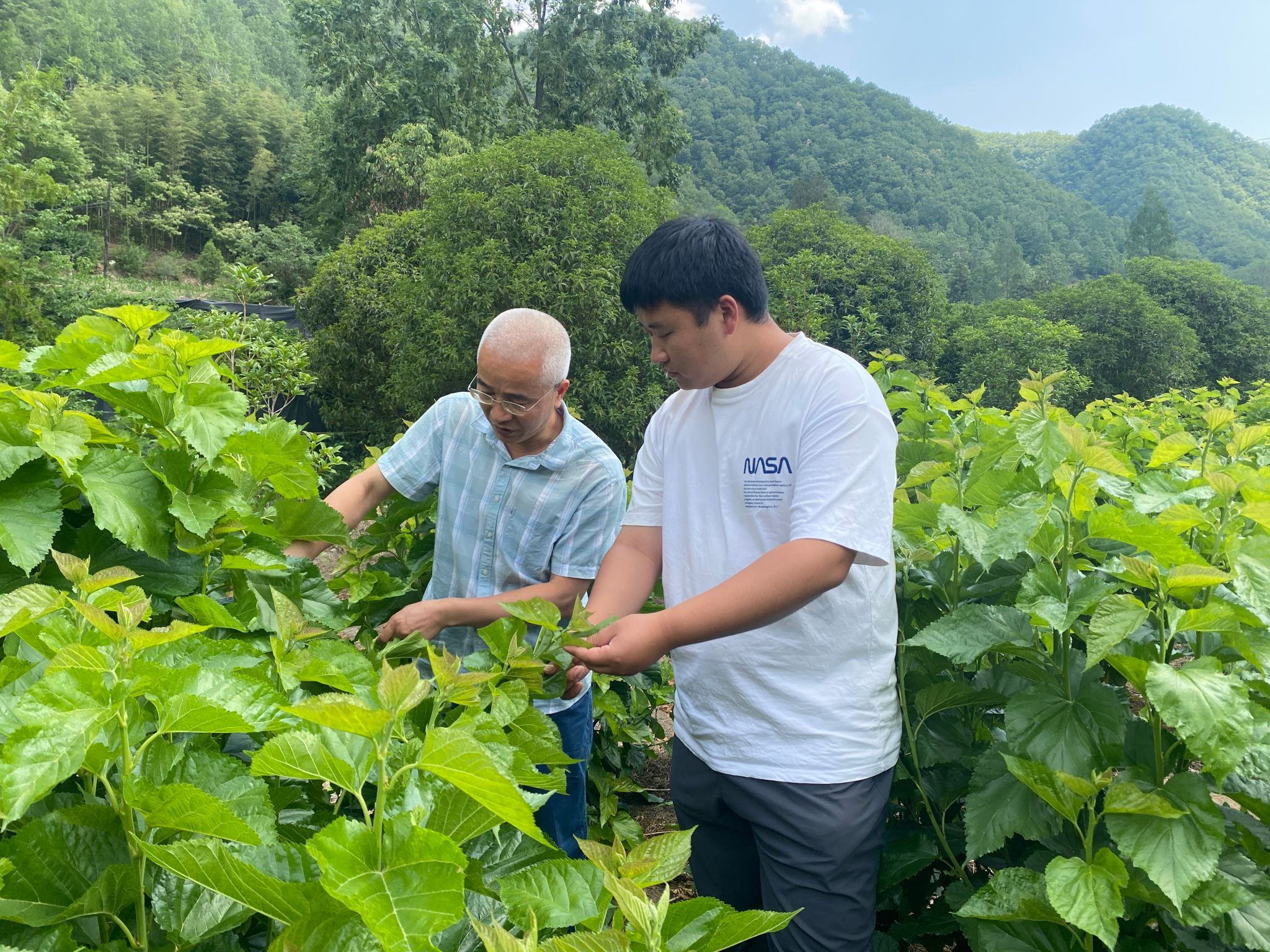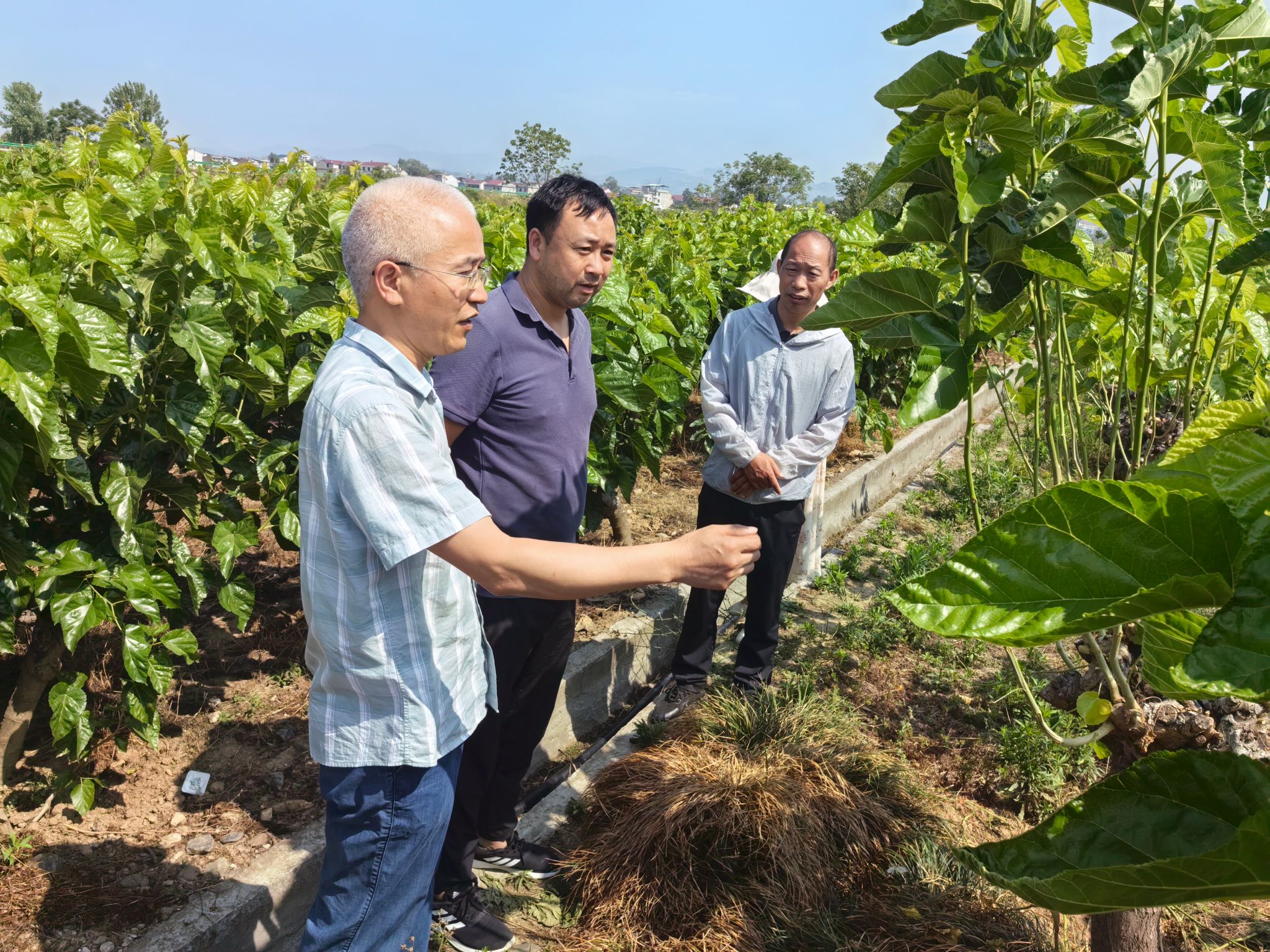 5月29日,彭云武研究员、教师张笙源同安康市蚕桑产业发展中心贺才厚高级农艺师、汉滨区蚕茶果技术中心副主任孙伟等一行前往五里镇刘营村,为当地多户蚕农提供全方位、精准化的蚕桑技术服务。