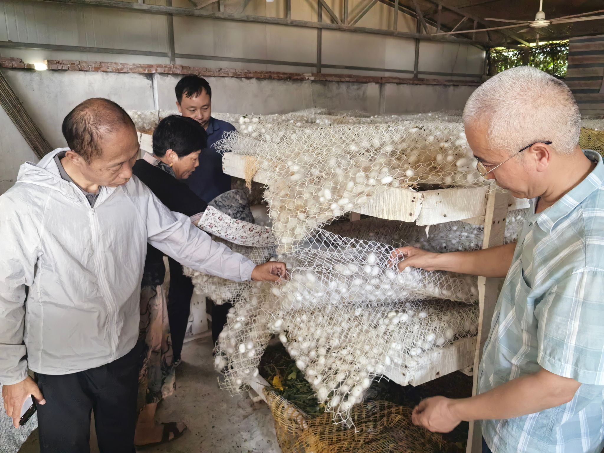 在新建桑园管理方面,专家们对桑树梳芽进行示范操作,建议加强补栽桑树苗、锄草和桑园套种玉米、大豆等管理工作。在蚕棚改建过程中,建议结合当地养蚕次数、气候特点和防鼠防虫需要进行统筹安排。在与蚕农交流养蚕技术时,专家们建议注意大蚕期通风,加强蚕体消毒防病,并针对采摘桑叶困难问题,提出多批次养蚕和加强桑园梳芽、施肥的建议。