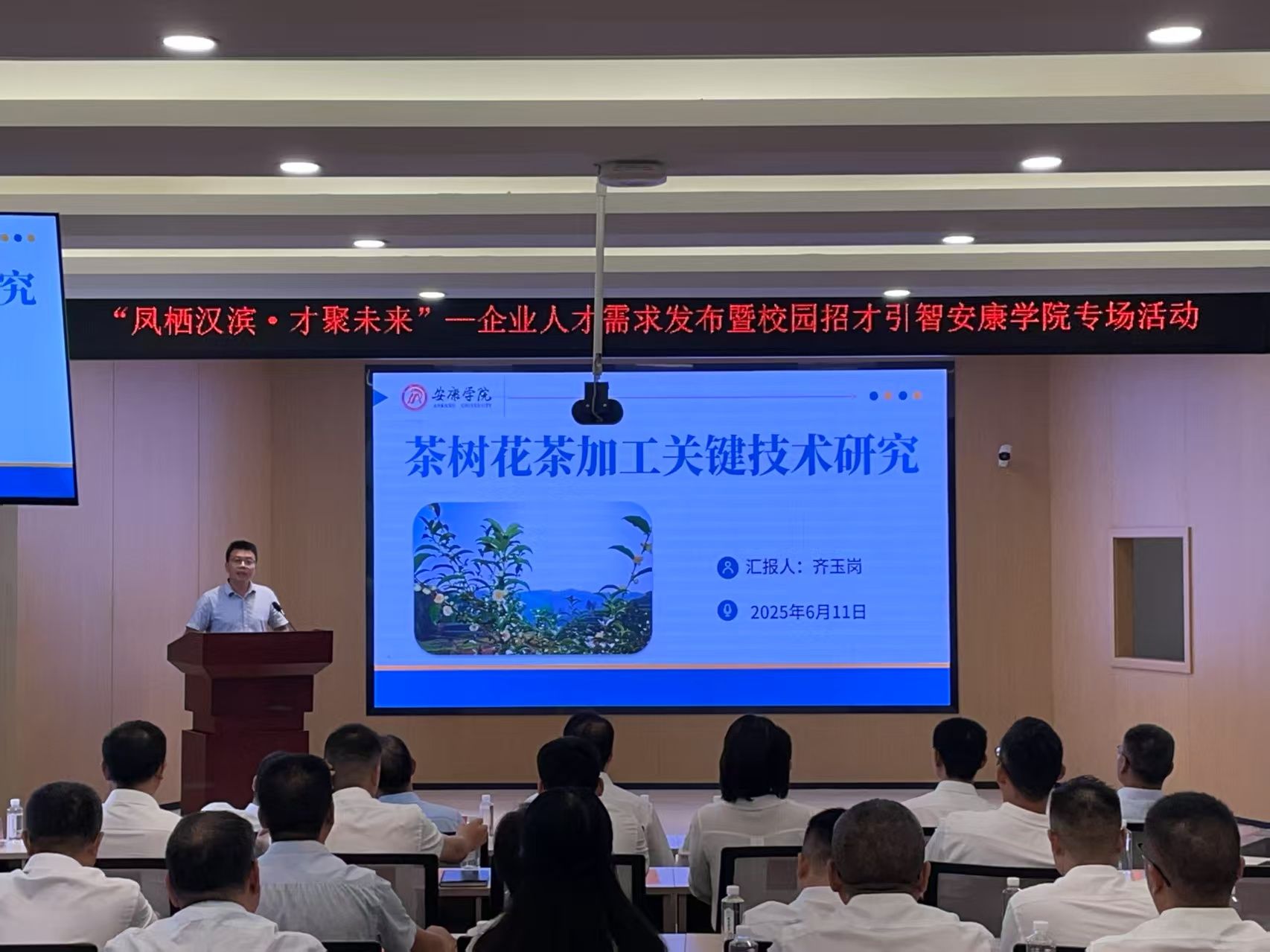 随后,学校人事处处长、人才办主任汪义瑞介绍了Beat365人才工作的总体情况,推介了Beat36510位重点学科人才;科研处组织了齐玉岗、刘星亮、王硕、王自超、何斐5位教师进行了成果路演,科技成果涵盖富硒茶、富硒食品、智慧农业、新型材料等领域;汉滨区6家重点企业代表发布了企业的人才技术需求;郭林新、顾浩峰、齐玉岗3位老师与汉滨区3家企业进行了科研项目签约;在人才招聘环节,400余名学生参加了20家企业的招聘活动。