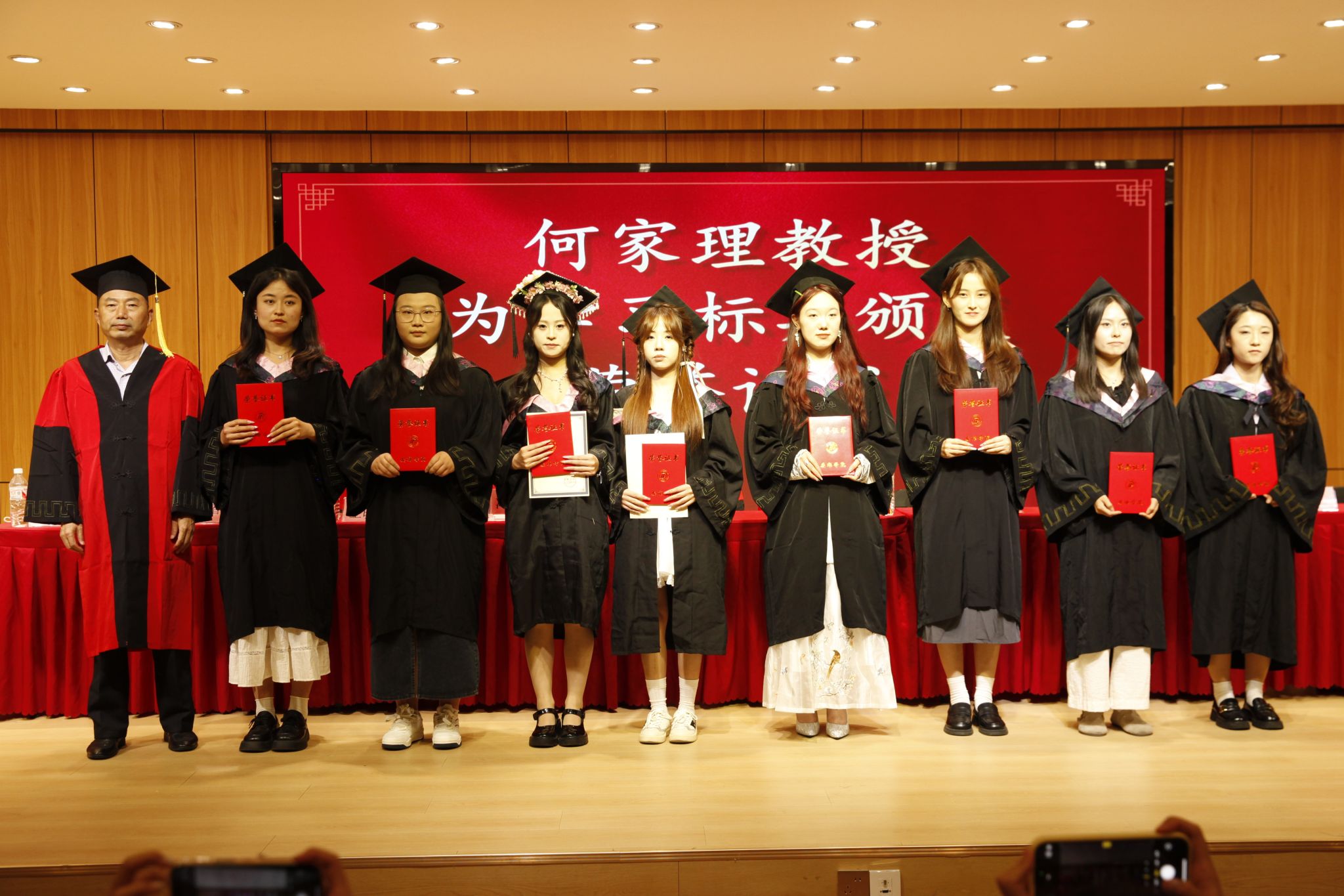 随后举行的学位授予仪式将典礼推向高潮。与会领导、教师代表为获得学士学位的毕业生拨正流苏、授予学位证书。