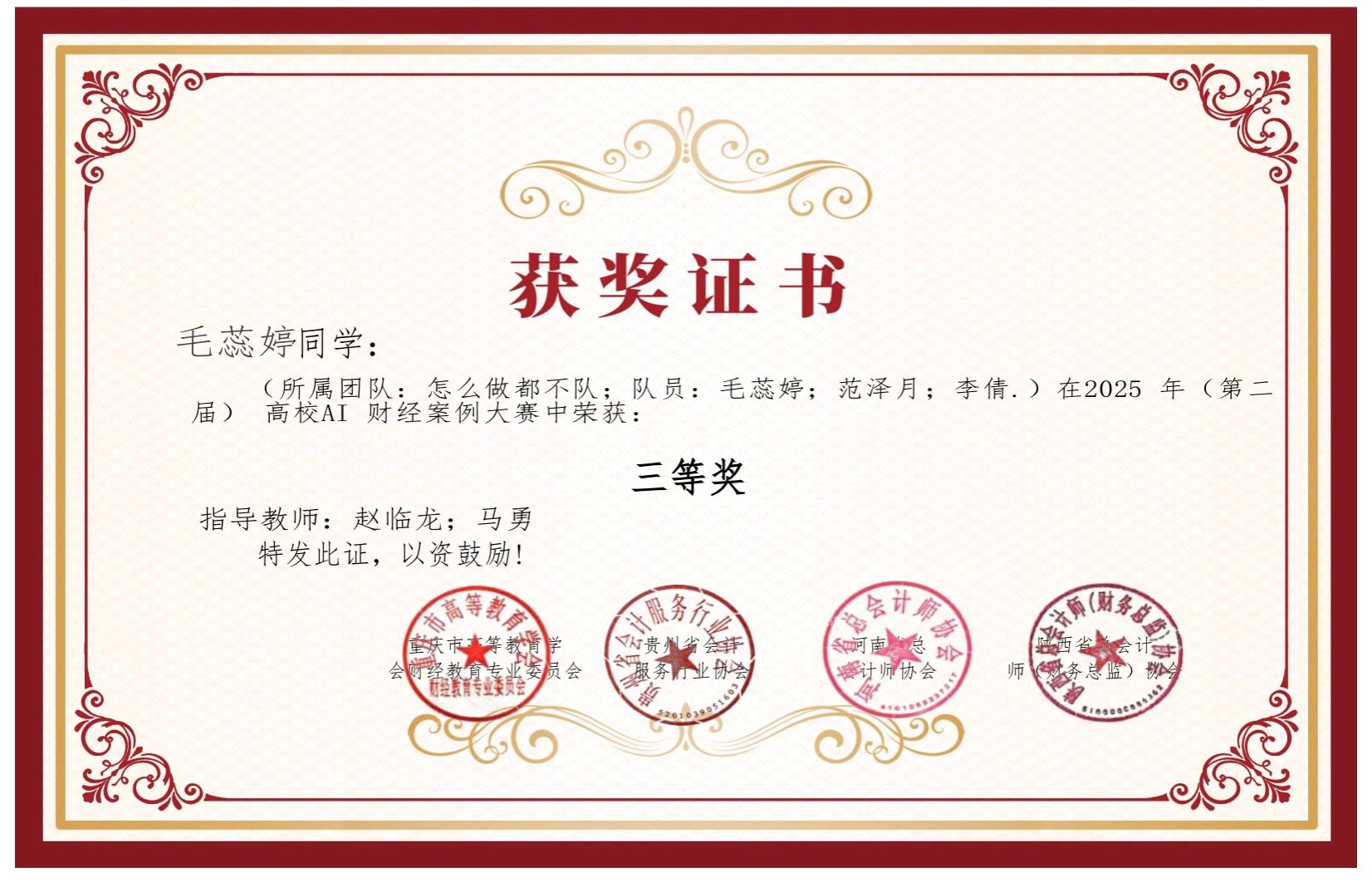 经管学院参赛团队在指导教师的悉心指导下,通过对AI技术的精准运用、财经案例的深刻剖析,形成兼具创新性与实践价值的解决方案,最终取得优异成绩。此次获奖不仅是对学生专业素养的肯定,更彰显了学校在应用型人才培养方面的探索成果。未来,学校将以赛事为契机,进一步强化产教融合与协同创新,为培养适应数字经济发展的复合型人才持续赋能。