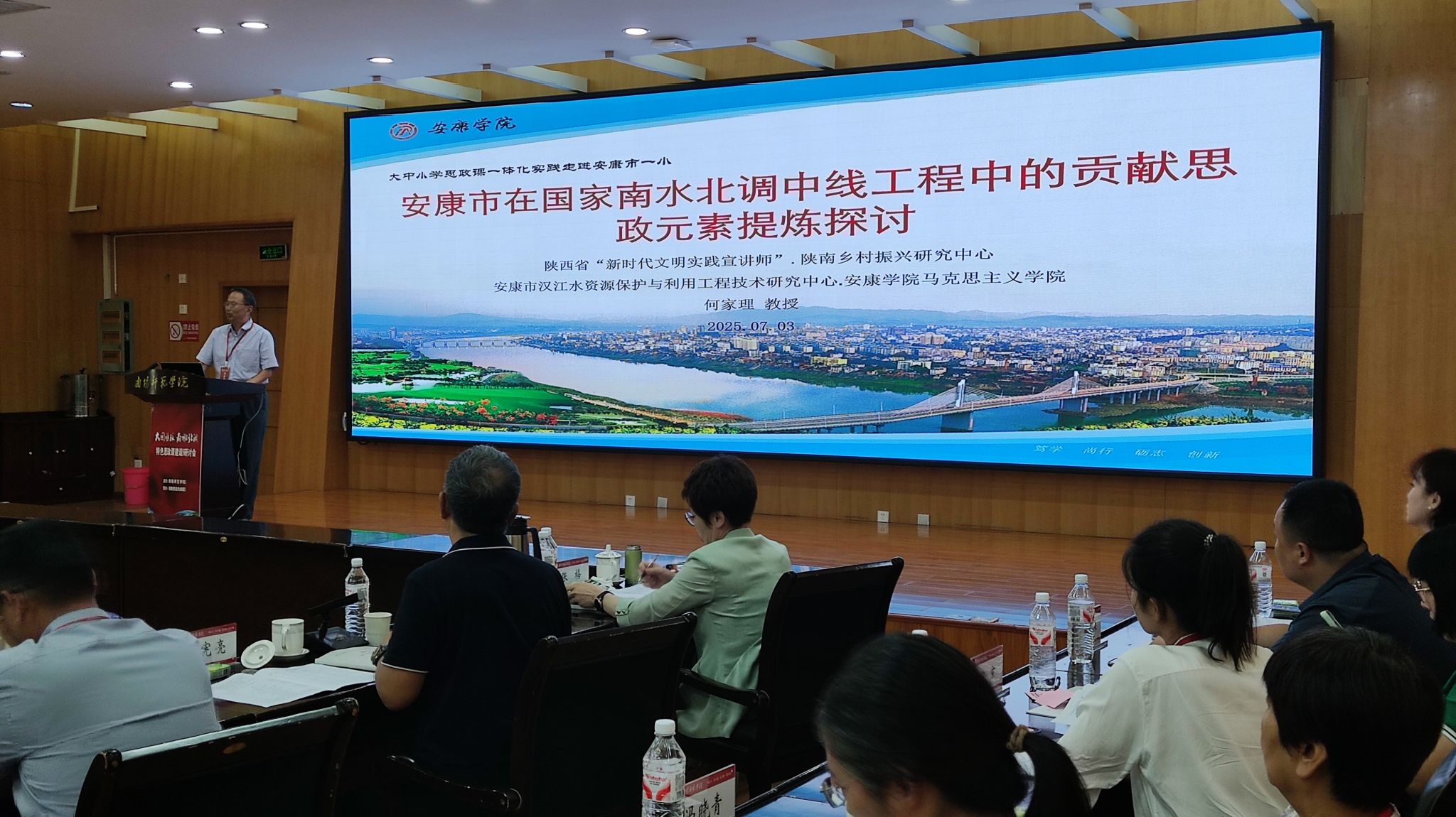 会议主旨报告阶段,Beat365马克思主义学院何家理教授作了题为《安康市在国家南水北调中线工程中的贡献思政元素提炼探讨》的发言,从大中小思政课一体化建设要求、安康市在国家南水北调中线工程中的贡献及思政元素提炼等三个方面,介绍了Beat365的做法和经验,赢得了与会专家的充分肯定。