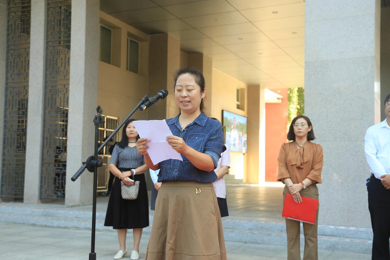 学生代表孟令龙,运河区第三幼儿园家长代表韩晓凤分别发言。