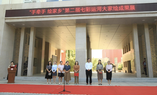 孔维艳宣布“手牵手•绘家乡,共享美育助成长”——第二届七彩运河大家绘成果展开幕。