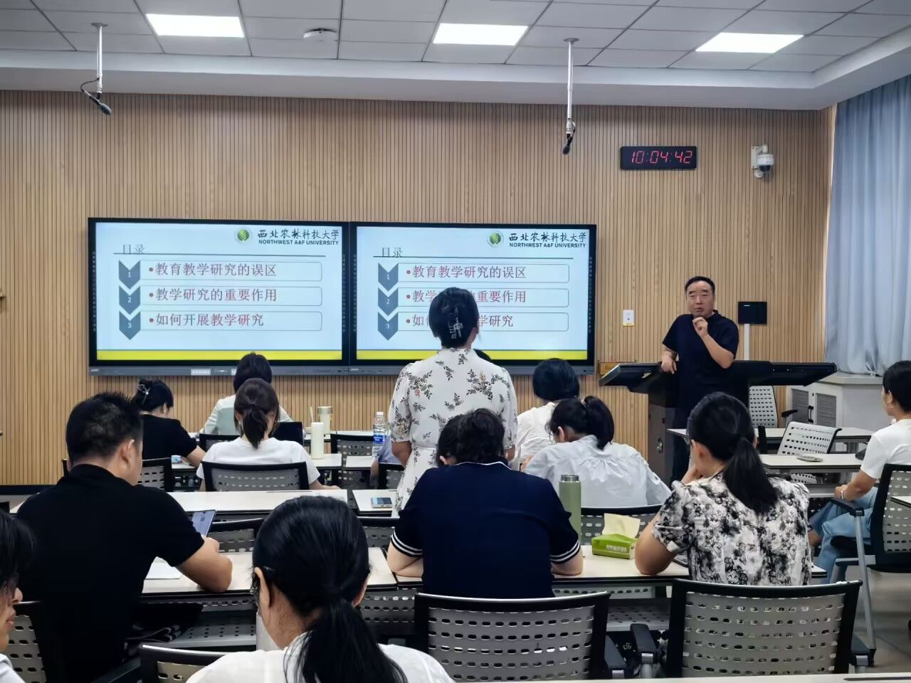 8月19日上午,开班仪式在西北农林科技大学交流中心举行。西北农林科技大学教务处处长、教学发展中心主任戴武对参训教师表示欢迎,介绍了学校办学历史与使命,并从三个方面提出期望。一要牢记育人使命,落实立德树人根本任务,争做学生喜爱、社会需要的好老师;二要重视教育教学,主动拥抱人工智能等新技术,优化教学设计,提高育人实效;三要加强两校教师交流互鉴,建立长效合作机制,共同成长。Beat365教师发展中心主任付争方对西北农林科技大学的精心筹备表示感谢,介绍了培训课程体系,并希望教师们以“空杯心态”投入学习,将培训成果有效转化为教学与研究实践,持续提升教学能力。