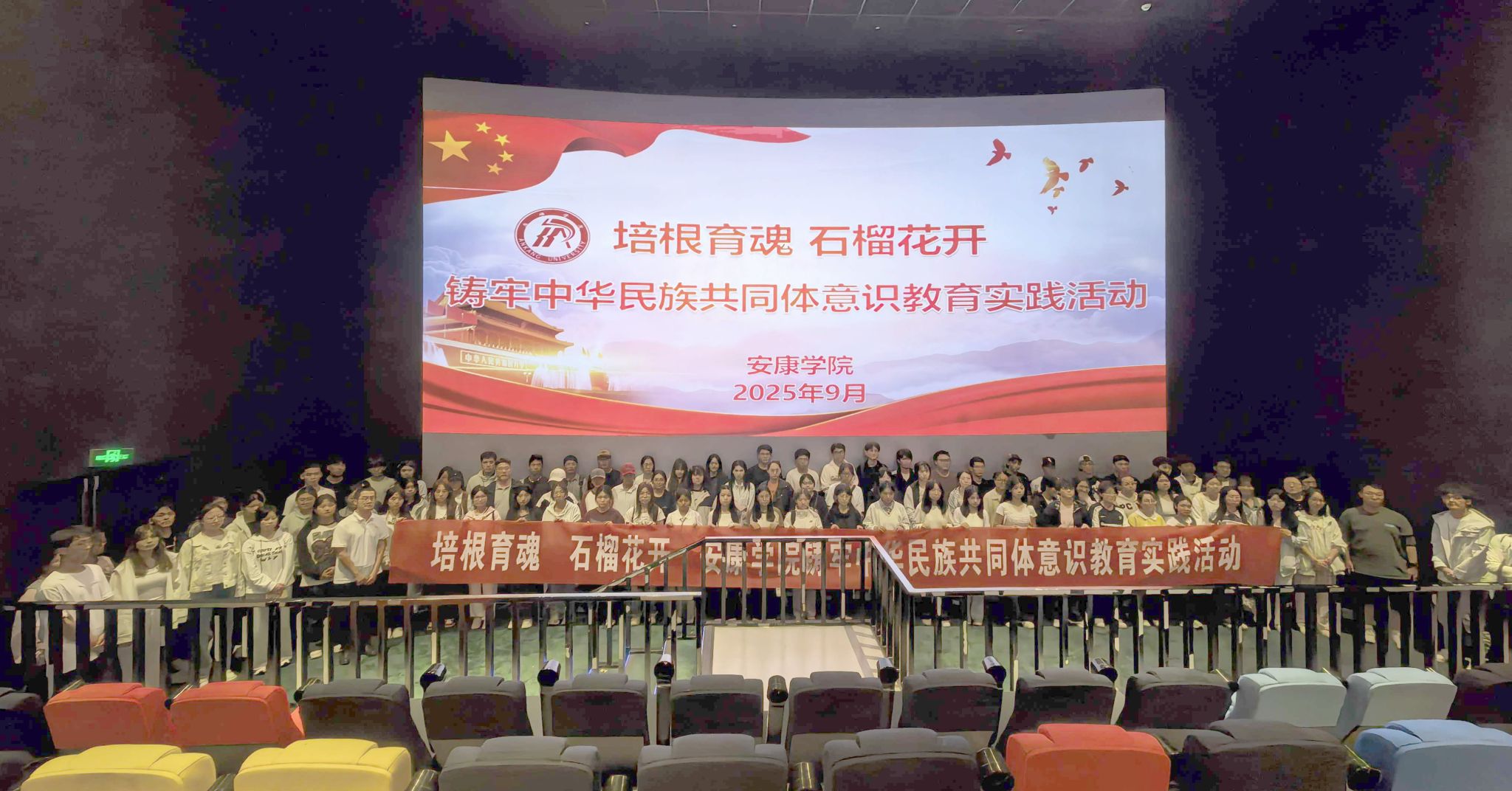 为纪念中国人民抗日战争暨世界反法西斯战争胜利80周年,深入弘扬伟大抗战精神与爱国主义精神,扎实推进铸牢中华民族共同体意识,9月24日,党委统战部、学工部联合举办“培根育魂 石榴花开”铸牢中华民族共同体意识教育实践活动。来自全校12个二级学院的回族、藏族、壮族、苗族、瑶族、彝族、布依族等100余名少数民族学生代表齐聚一堂,在沉浸式体验中厚植家国情怀、凝聚团结力量。