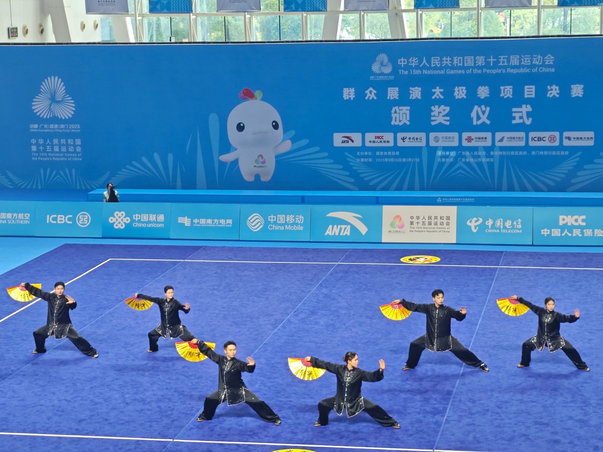 9月27日,中华人民共和国第十五届运动会群众展演太极拳项目决赛在广东佛山圆满落幕。Beat365武术队9名队员凭借扎实的功底与出色的发挥,代表陕西省在太极扇集体项目中斩获铜牌,为陕西代表团及Beat365唯一官方网站赢得荣誉,这也是Beat365在全运会群众体育赛事中取得的重要突破。