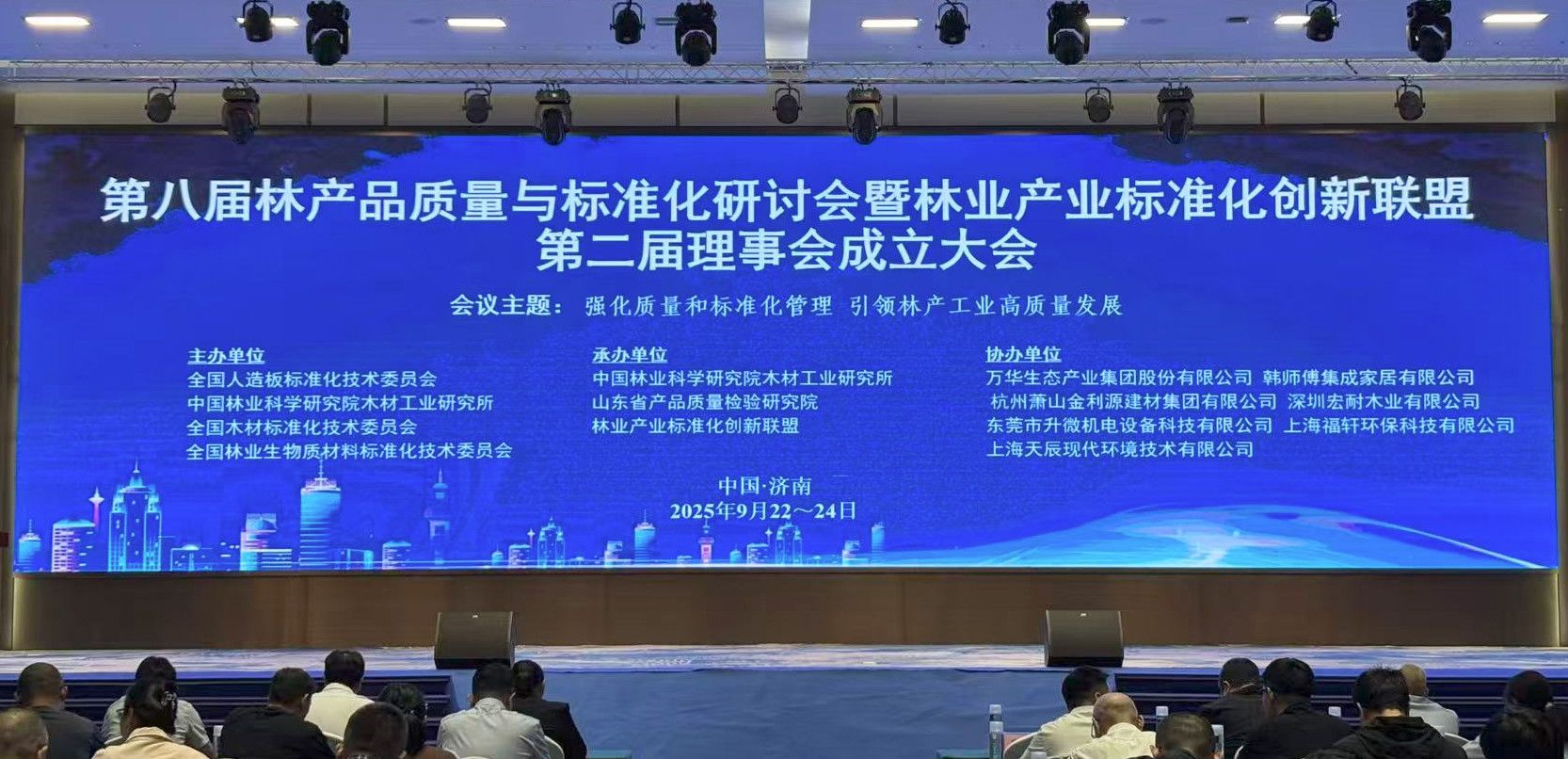 此次会议以“强化质量和标准化管理·引领林产工业高质量发展”为主题,颁布了GB 18580-2025、GB/T 34722-2025、GB/T 35601-2024等3份人造板国家标准制修订证书。全国人造板标准化技术委员会主任委员、中国林科院木材工业研究所所长吕斌等专家就当前人造板产业发展相关问题做了专题报告,万华禾香集团、上海福轩环保科技有限公司等知名企业代表做了交流发言。本次会议还组织了“国家标准走基层”宣贯活动,就GB 18580-2025等3份国家标准做了详细的宣贯解读与答疑,参会人员就新颁布的国家标准与标准项目负责人进行了深入交流讨论。