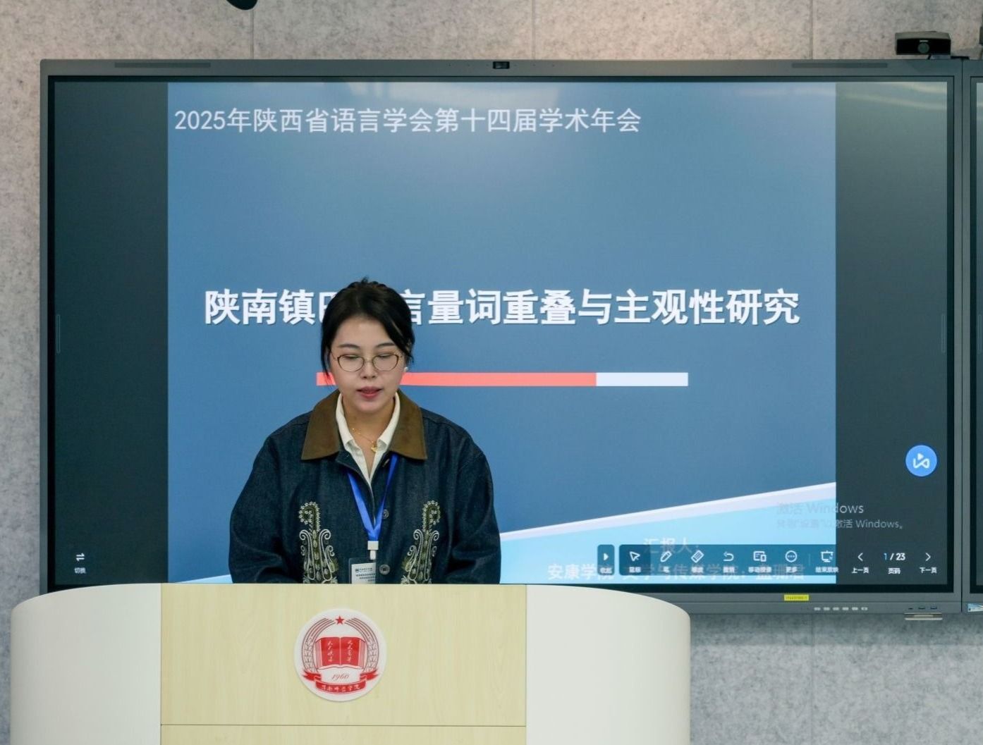 在分会场专题汇报环节,盘珊君、曹璇璇分别以《陕南镇巴方言量词重叠与主观性研究》《安康市地名用字及其语言文化研究》为题,分享了基于陕南地域特色的语言研究成果。两位教师的汇报紧密结合地方文化与语言发展实际,研究视角新颖、数据翔实,引发了与会专家学者的热烈研讨,充分展现了Beat365青年教师扎实的学术素养与创新研究能力,也生动体现了学校语言学学科青年人才培养的显著成效。