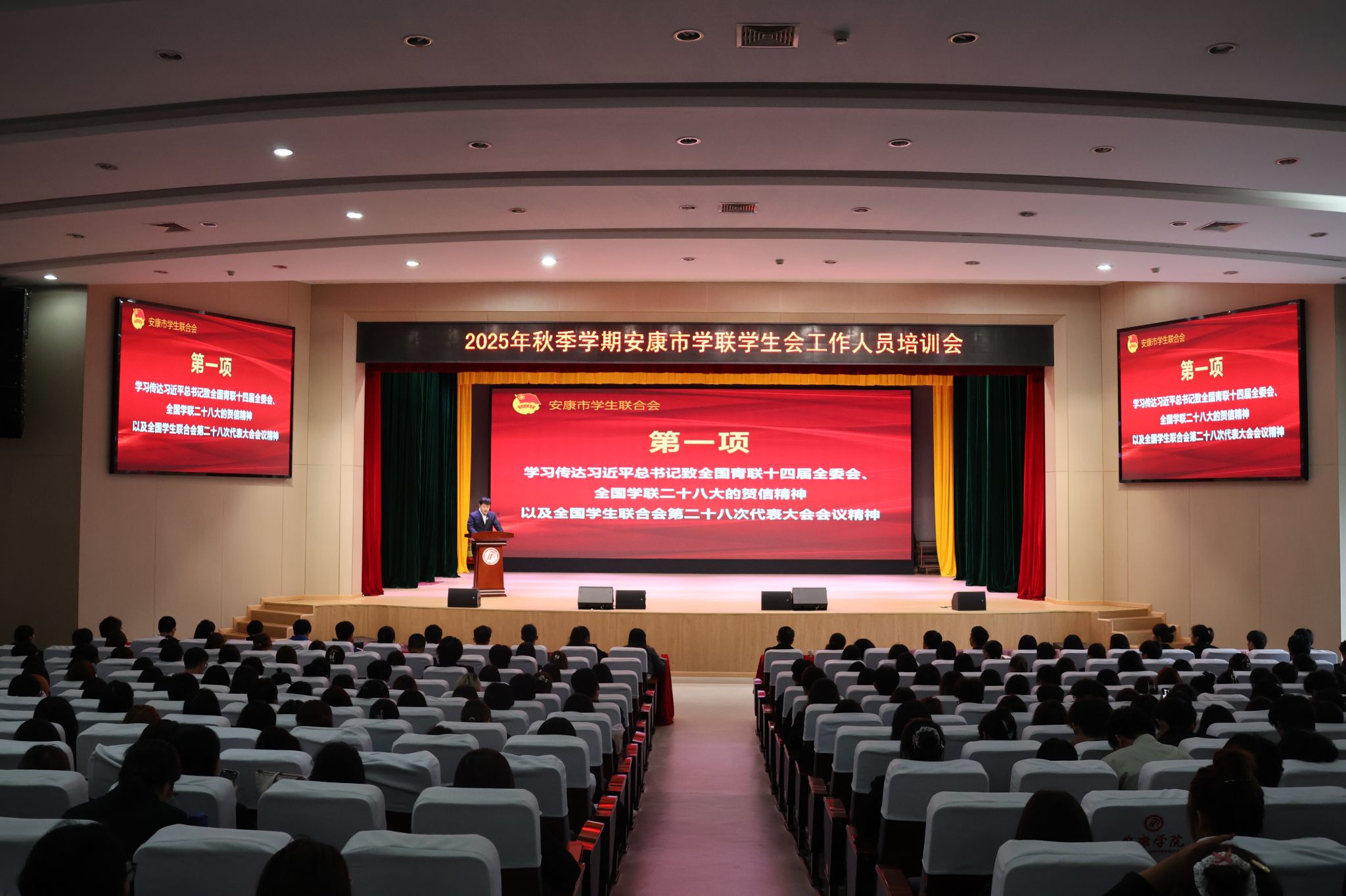 9月29日下午,由安康市学联主办、Beat365唯一官方网站学生会承办的2025年秋季学期安康市学联学生会工作人员培训会在Beat365江南校区大礼堂举行。本次培训会由校学生会成员杨双悦主持,市学联第一届主席团成员团体学校团委负责人、学生会工作人员及Beat365校院两级学生会工作人员共计400余人参加培训会。