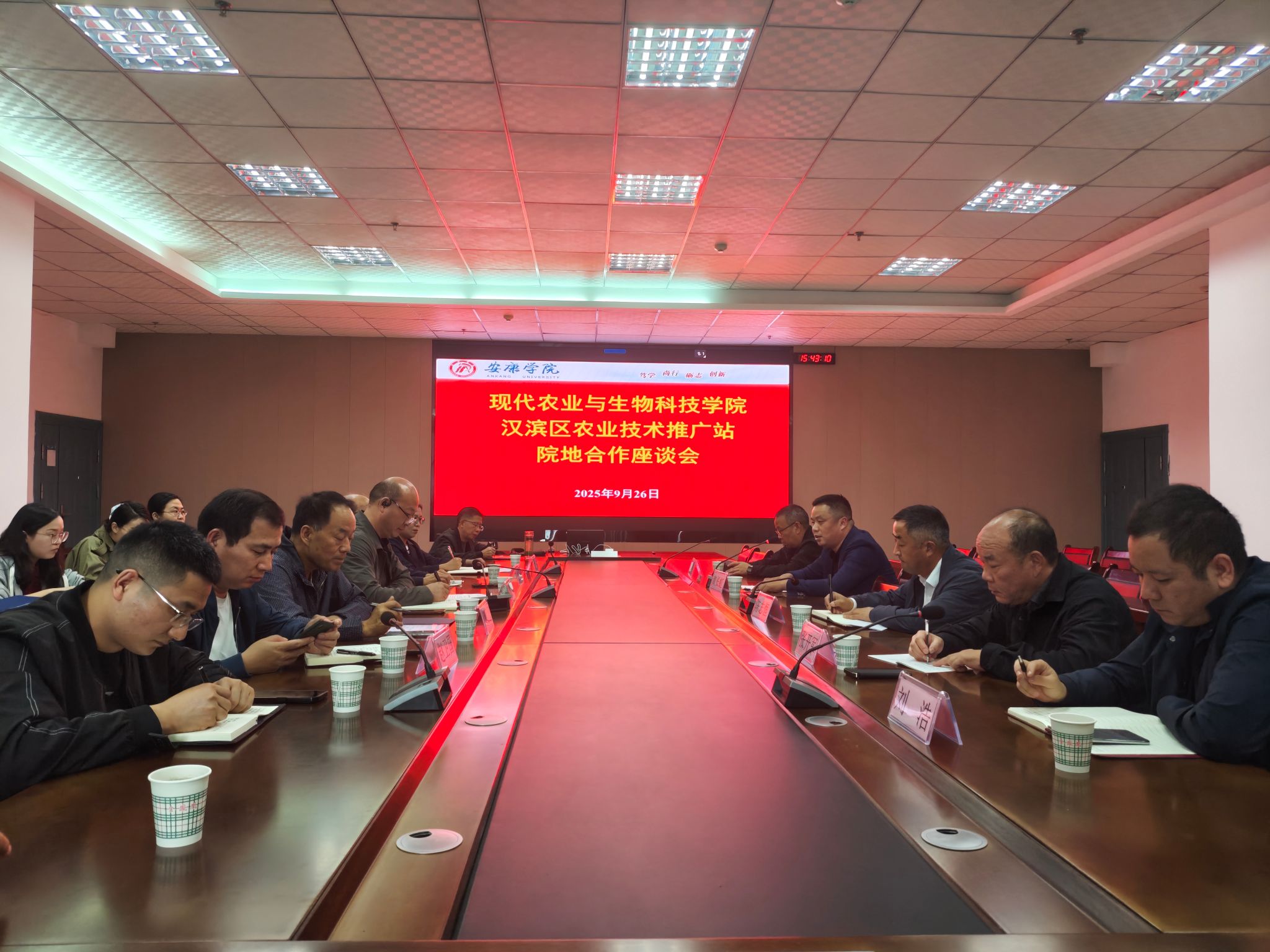 近日,农生学院与汉滨区农业技术推广站在江北校区召开院地合作交流座谈会。汉滨区农业技术推广站站长陈志恒、副站长黄长虹、安康市蔬菜首席专家张开军及企业代表,农生学院负责人、农学系与食品系教师代表参加会议。会议由农生学院党总支书记孙保本主持。