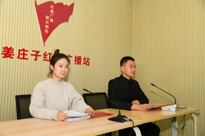 祭扫结束后,师生分三路在姜庄子村开展了“弘扬齐越精神、助力乡村振兴”主题活动:广告学专业的师生走进村办企业进行调研考察学习;播音、编导网新专业的师生来到红旗广播站感受齐越先生“为人民发声、为党发声”的家国情怀;国家语言文字推广基地的师生们走进姜庄子吉庆小学,签订扶持共建协议,在一年级教室教孩子们读课文《升国旗》。