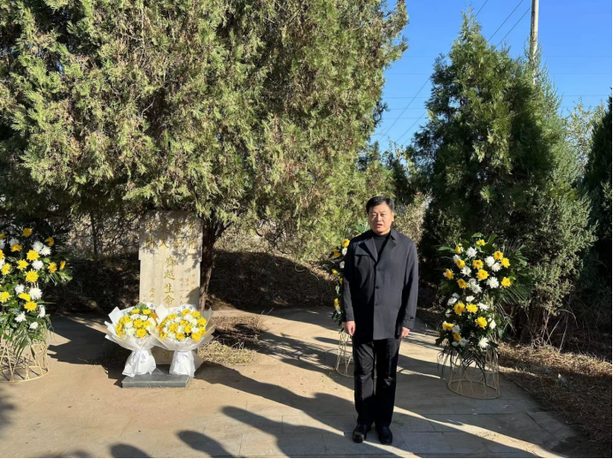 潘治钢在齐越先生墓前发表讲话,号召师生深刻学习并弘扬齐越精神,铭记老一辈播音艺术家的理想信念和家国情怀,忠于党的新闻事业,肩负起党的喉舌重任。