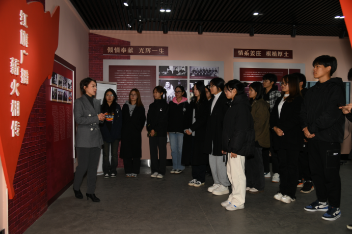 张海燕向传媒学子讲述齐越先生在姜庄子生活劳动的经历,勉励大家要认真学习并践行“忠诚、敬业、爱民、廉洁、奉献”的齐越精神,成为能够担当民族复兴大任的时代新人,为党和人民的传媒事业做出自己的贡献。