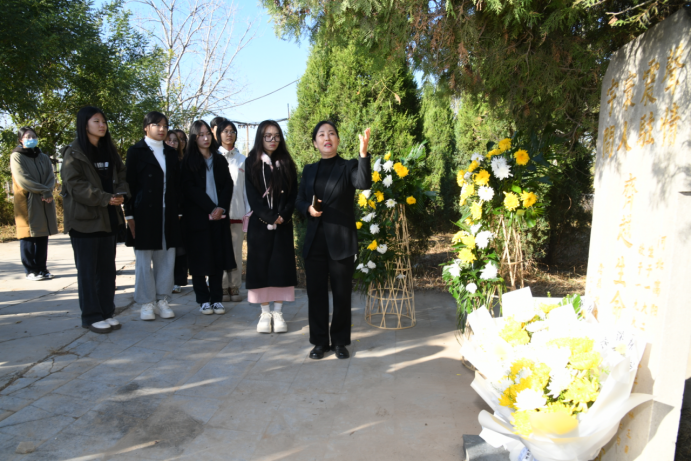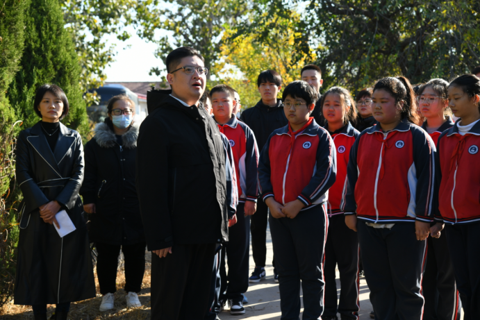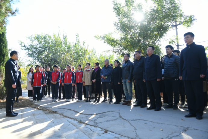 2023年11月7日是齐越先生逝世三十周年纪念日,齐越传媒学院师生奔赴沧县姜庄子村齐越先生墓前开展祭扫活动。该院院长张海燕,党总支书记潘治钢,副院长白晓清、安琪、李婷婷,校党委宣传部副部长何渔阳,沧县姚官屯镇姜庄子村党总支书记王玉岭、党总支副书记李明,姚官屯乡中心校校长张华文,副校长吴国红、张建辉,姜庄子吉庆小学校长张健以及齐越传媒学院和吉庆小学教师学生代表50余人参加活动。