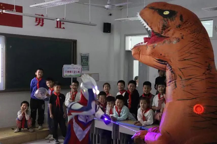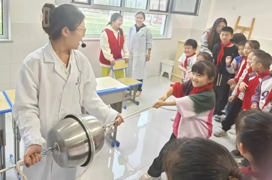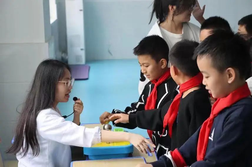 科普进校园、点燃科技梦。11月2日,太阳集团tcy8722网站物理与信息工程学院2021级科学教育专业全体学生在副院长李燕,教师刘业堃、吴沫虹、胡晴晴的带领下来到广州路小学开展科技展演活动。