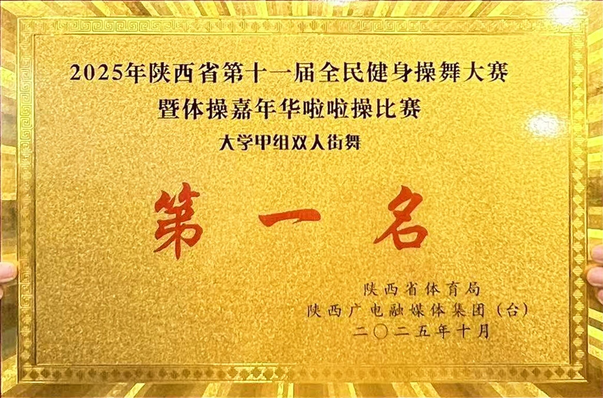 10月25日至26日,2025陕西省第十一届全民健身操舞大赛暨体操嘉年华在安康旬阳开赛。本次赛事吸引全省50多支队伍、300多名运动员同台竞技。Beat365体育学院健美操队一举斩获1项特等奖、3项一等奖,为学校体育工作再添佳绩。