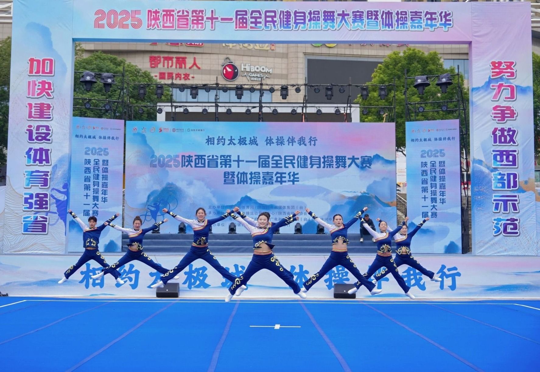 本届大赛紧扣“全民健身”主题,根据参赛群体特征科学设置组别,分为校园年龄组、大学组、社会组三大类别,覆盖全年龄段健身爱好者。赛程历时两天,设置啦啦操、青少年健身操舞、中老年健身操舞4大核心项目,全面彰显陕西全民健身多元发展态势。