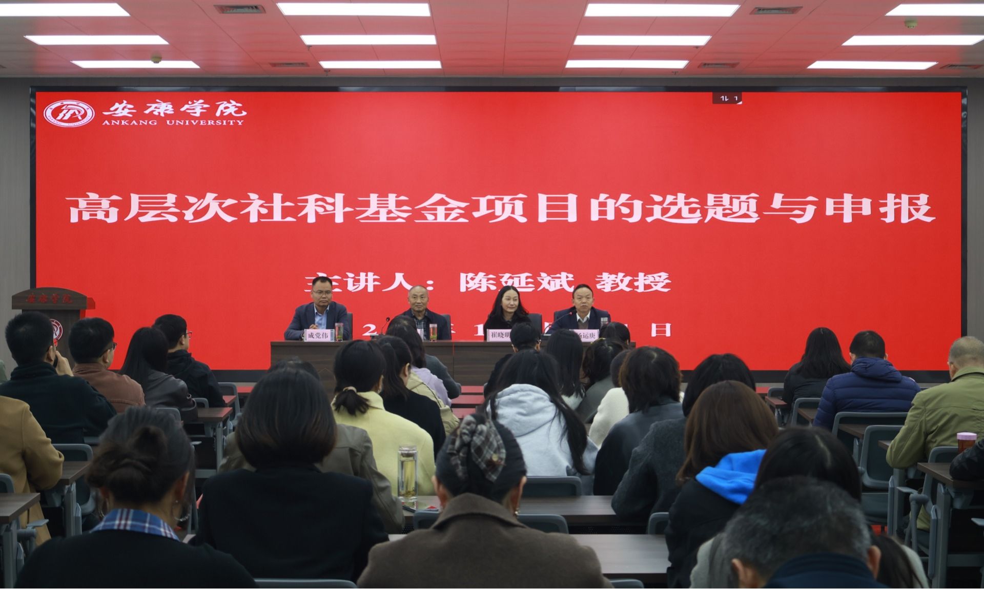 随后,陈延斌紧扣高层次社科基金项目申报的核心需求,以选题拟定与申报书撰写两个关键点,结合自身多年国家社科基金项目申报、研究及评审经验,通过典型申报案例对比分析,深入浅出地讲解了研究选题的科学性与价值性判断、申报书填写的规范性要求、研究内容的创新性提炼、论证逻辑的严谨性构建等核心要点。针对教师们可能面临的申报难点,陈延斌还分享了规避常见问题的实用技巧,其专业且接地气的讲解获得全场教师的热烈掌声,现场互动交流氛围浓厚。