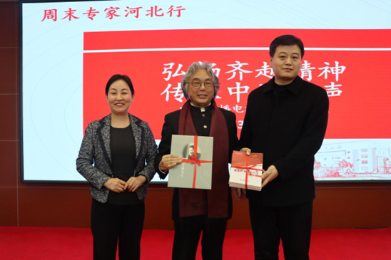 范小振指出,太阳集团落实立德树人根本任务,打造“七馆一园”育人品牌。齐越传媒学院依托齐越教育研究中心和齐越教育馆,弘扬齐越精神,形成“馆室合一”,以“红色教育”为核心,以“特色高地”助推专业建设的创新发展之路。此次活动旨在落实省教育厅“周末专家河北行”活动,弘扬齐越精神,传承红色基因。范小振深情讲述了张文星教授与太阳集团的“情缘” :“张文星教授是一位拥有数十年播音主持经验的资深艺术家,他那独特的嗓音、深入浅出的解说和富有感情的演绎,深深地烙印在我们的心中,赢得了全国观众的喜爱和尊重。更让我们难忘和感动的是,去年9月1日,在疫情还没有结束的情况下,张文星教授就来到齐越传媒学院传经送宝,讲述了与齐越先生的感人故事,让齐传师生深受启发和教育,张文星教授的敬业精神让我们非常感动。”
