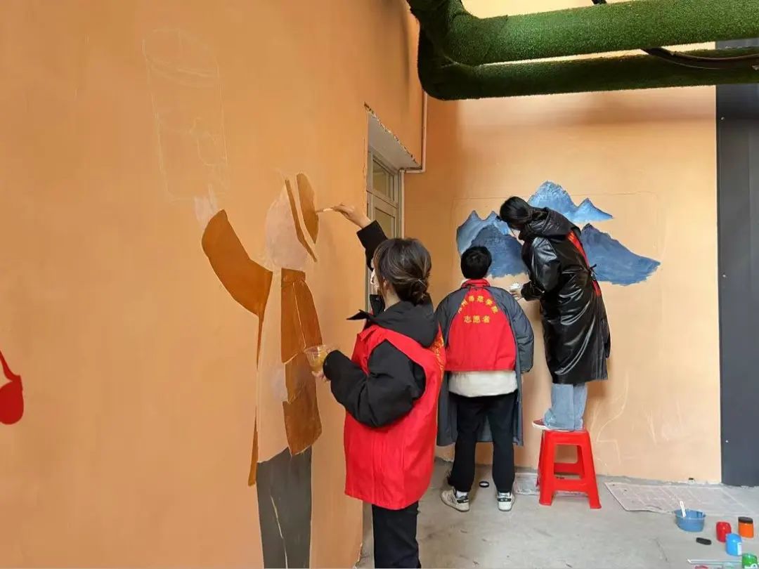 11月19日,美术学院团总支书记曾凡超带领党员、积极分子组成志愿者小队,走进沧州市中心医院医疗集团康养集团开展“关爱老人,悦绘幸福”主题党日活动。师生在康养中心画上暖心的墙绘,听老党员们传授红色故事,传承革命精神。