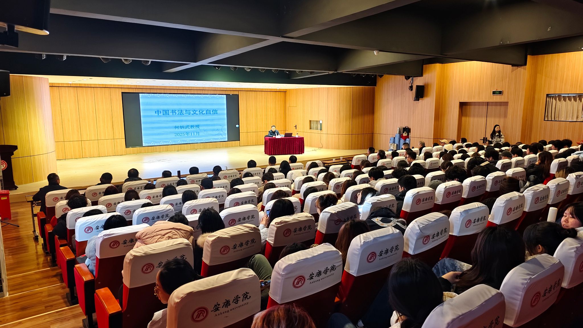 11月19日,陕西省社会科学院研究员、陕西省有突出贡献专家何炳武研究员应邀为Beat365师生作“中国书法与文化自信”学术报告。学校党委副书记、纪委书记安永强出席报告会,艺术学院师生200余人参会。报告会由艺术学院院长李景林主持。