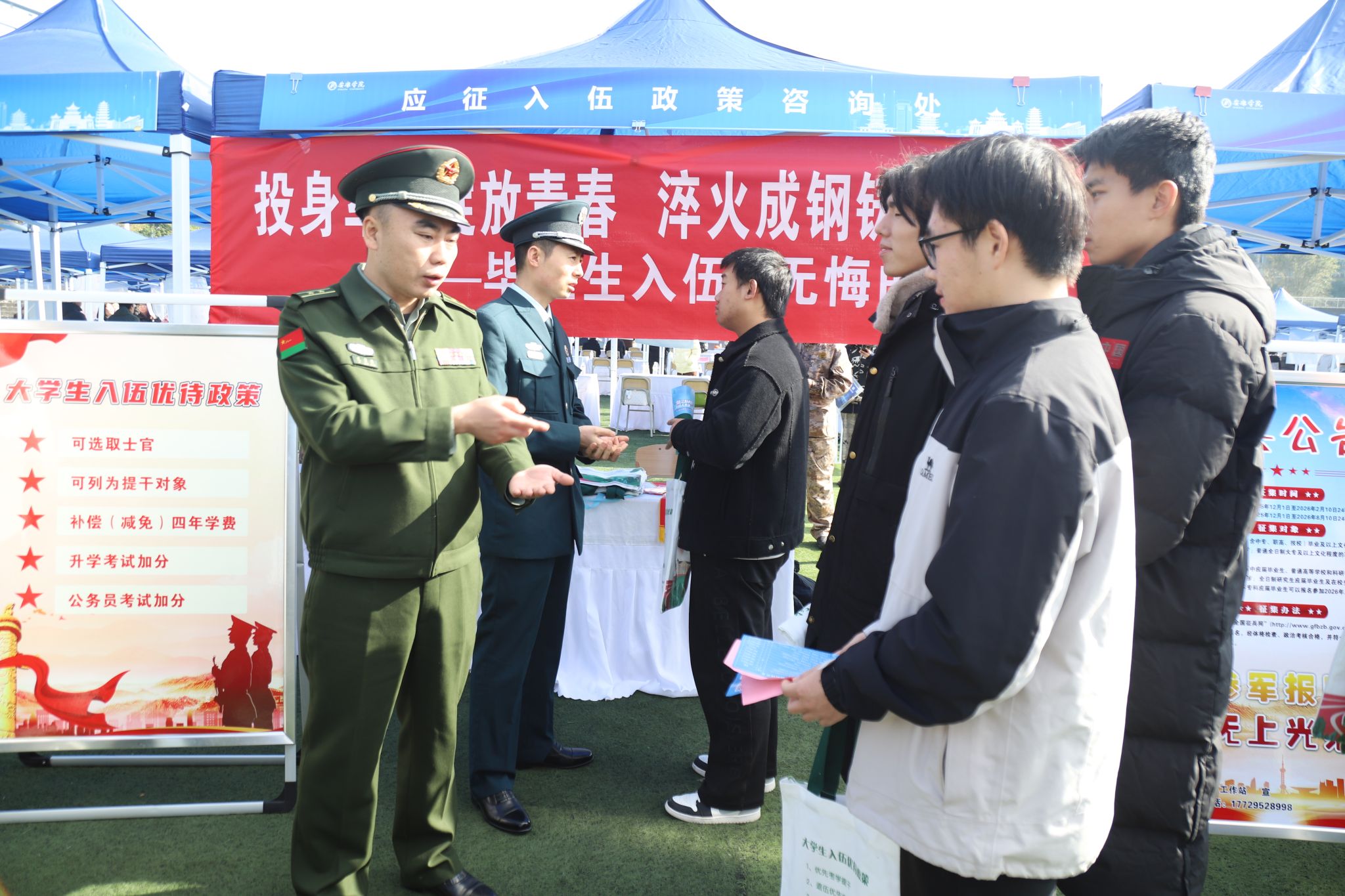 为提升就业服务精准度,本次双选会现场特别设立了政策咨询、征兵入伍、简历指导、医疗服务等功能专区。就业指导中心教师、征兵工作站工作人员及校医院医护人员共同值守,为千余名毕业生提供“一对一”政策解读、简历优化、面试辅导与健康保障等贴心服务,有效助力毕业生提升求职竞争力。