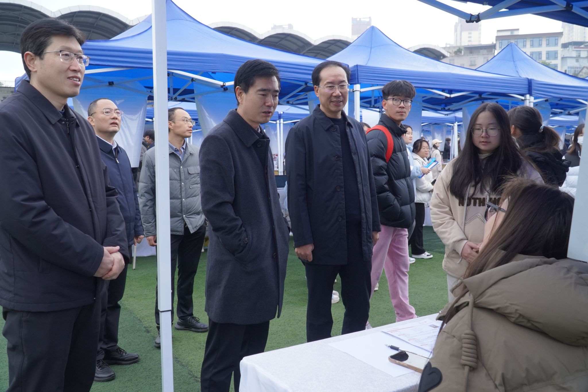 学校副校长屈险峰、安康市创业就业服务中心主任殷贵军、副主任贾学平等亲临现场指导工作,逐一走访用人单位展位,详细了解招聘需求、人才标准以及校企合作意向,并与毕业生亲切交流,关心大家的求职进展和实际困难。双方还围绕区域就业趋势、协同育人机制等议题进行了深入探讨。