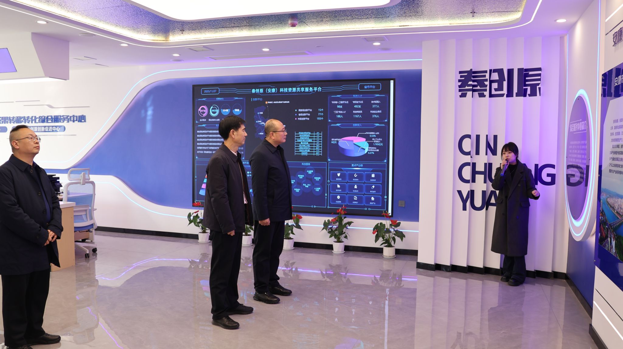 郭瑾一行先后走访了校史馆、图书馆、科技服务地方成果展览馆、安康市秦创原创新促进中心、大学生创新创业孵化园。在参观图书馆时,郭瑾对馆藏资源数字化建设工作高度认可。对于安康市秦创原创新促进中心落户Beat365的校地融合创新举措,郭瑾表示,该举措不仅为学校深度融入地方科技创新搭建了高效平台,也充分彰显了学校在这一方面取得的显著成绩。在大学生创新创业孵化园,郭瑾与正在开展项目实践的学生深入交流,对学生扎实专业功底和实践能力给予了充分肯定。