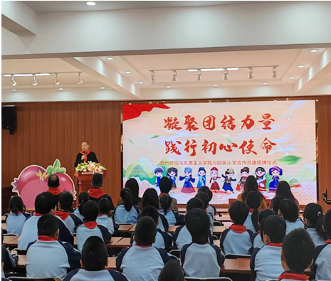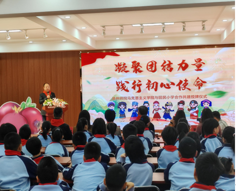 为贯彻落实习近平总书记关于建设教育强国和思政课建设重要论述精神,推进大中小学思政课一体化建设,11月28日上午,马克思主义学院院长李树旗、副院长刘云鹤、《纲要》教研室主任张卓共赴沧州市回民小学,就“河北省大中小学思政课一体化集体备课中心实践基地(小学学段)”与沧州市运河区回民小学党支部书记、校长张钢签署了合作共建协议,并举行了实践基地(小学学段)揭牌仪式。沧州市运河区民宗局副局长李雅婧、教体局青少年活动中心主任王承丽、回民小学德育副校长白雪及教师代表出席活动。