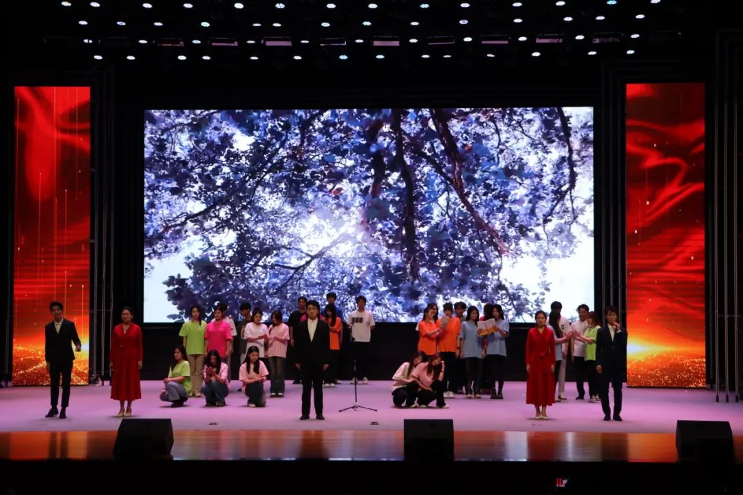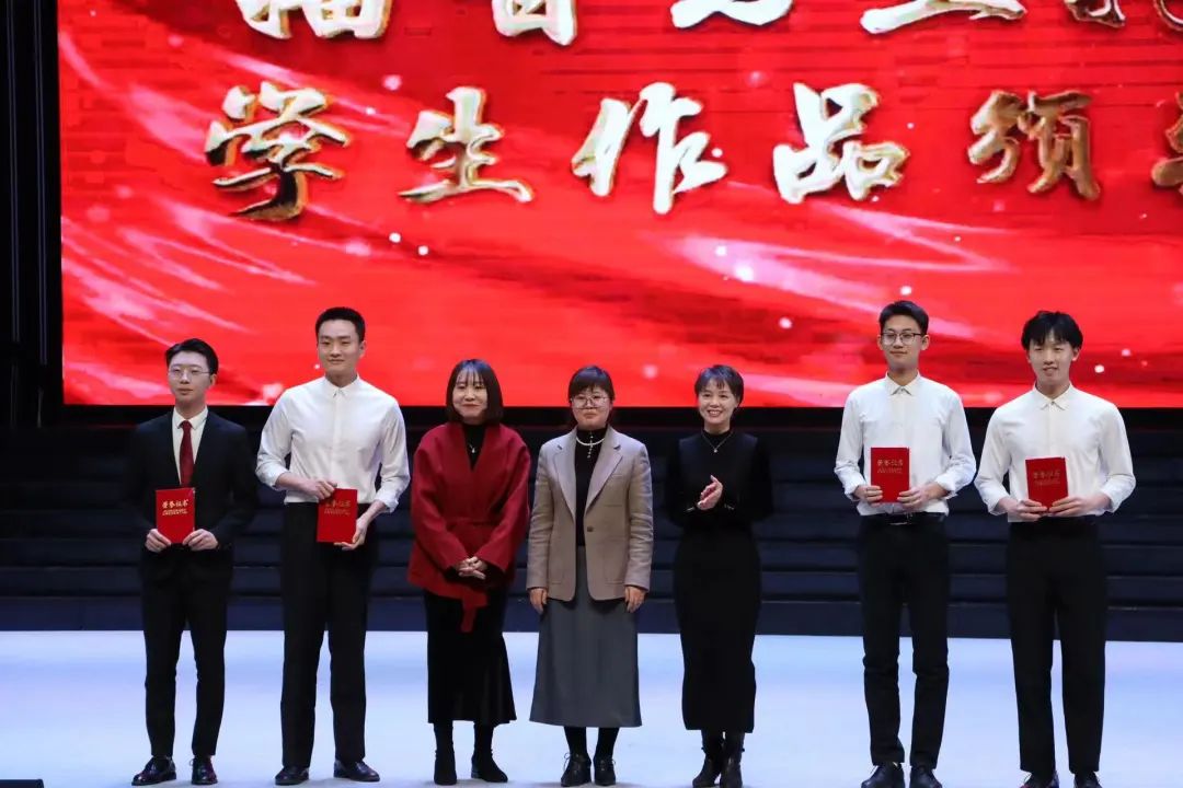 本次艺术周以“弘扬齐越精神,传承中国之声”为主题,艺术周期间相继开展齐越教育馆文创设计大赛、沧州地域文化讲座、传媒人才讨论研究会、姜庄子扫墓、齐越话剧《热土难离》、齐越馆讲解大赛等多个活动。本次成果展示会共分为六个篇章,以朗诵、话剧、视频等多种艺术形式展示课程思政与专业教学成果。汇演中还特别穿插了颁奖仪式,李婷婷、安琪、沙莎、于园园、郭晓月、邵明升、代静、张邱萍、贾溥畅、冉德峰、尹迅、谢志宪等指导老师为获得优秀作品奖的学子颁奖,这份荣誉不仅记录下同学们在赛场上、在舞台上奋勇拼搏、扬帆筑梦的精彩,更是太阳集团tcy8722网站齐越传媒学院“三全育人”交出的满意答卷。