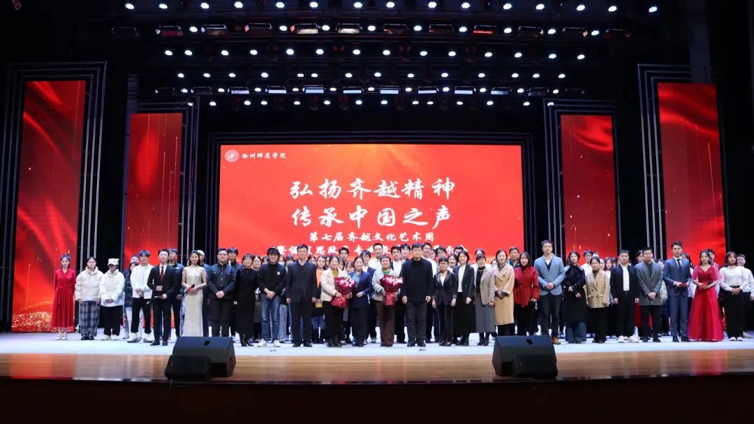 这是一次艺术的视觉盛宴,这是青春之火在奔腾燃烧。11月30日,艺术的氛围溢满校园,璀璨的灯光点亮齐越讲堂,“弘扬齐越精神,传承中国之声”齐越文化艺术周暨课程思政与专业教学成果展示会如约而至。师生欢聚一堂,用文艺形式呈现学校“三全育人”的新成果,为大家带来一场视听盛宴。党委书记云电军,党委常委、副校长高颖,沧州市朗诵协会会长尹广军出席。